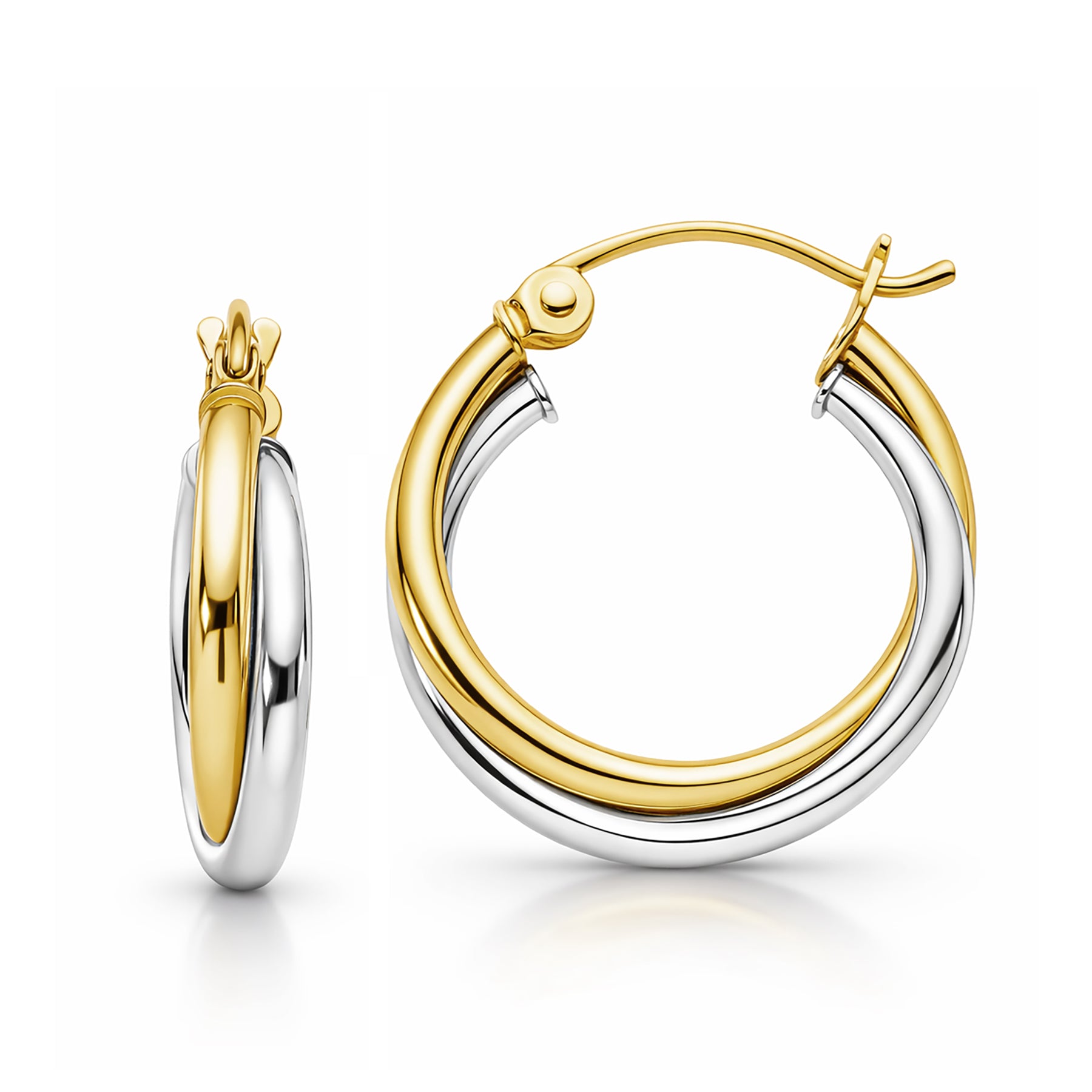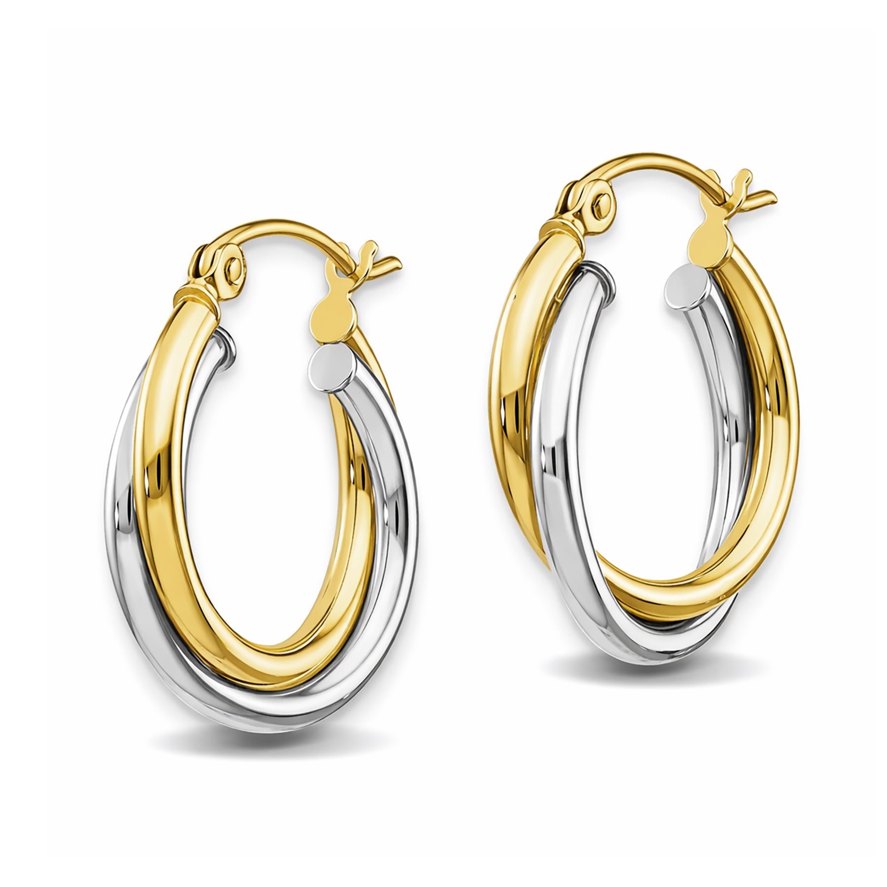 10K Solid Gold Two-Tone Twisted Hoop Earrings for Women