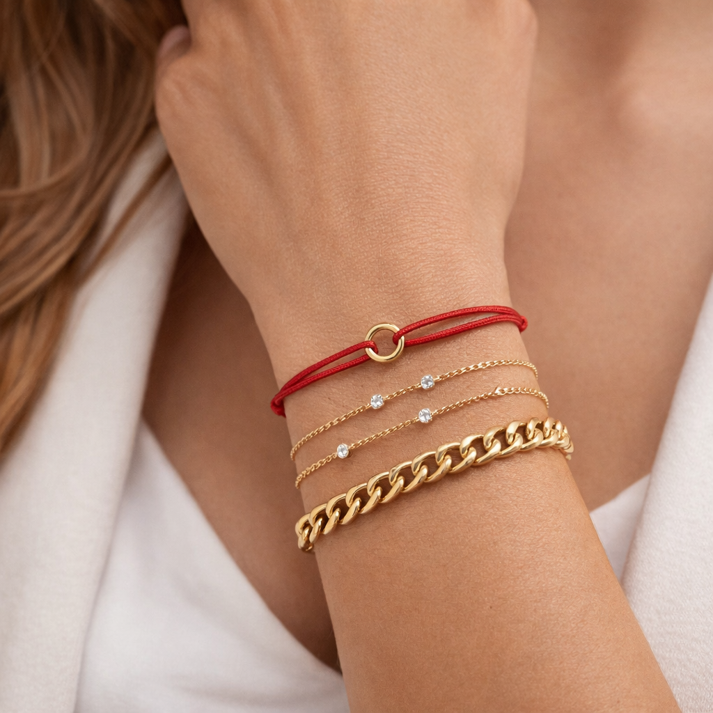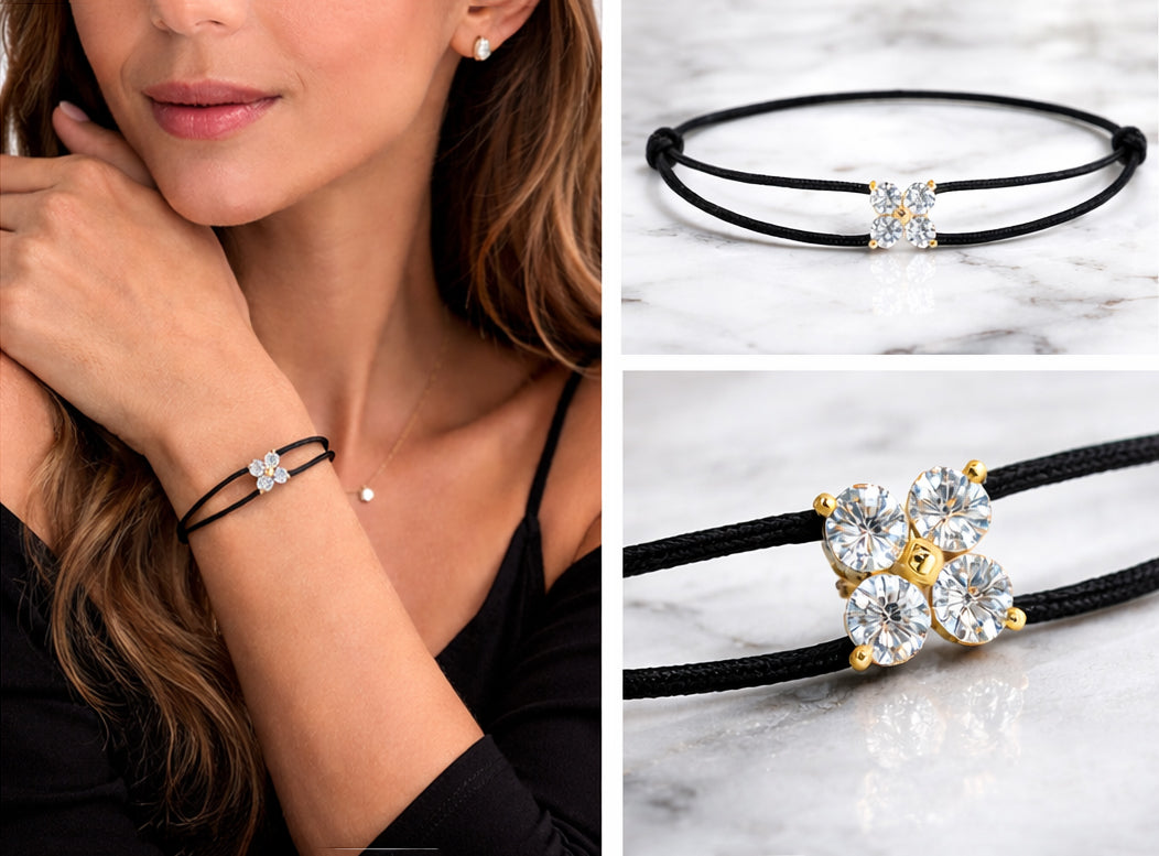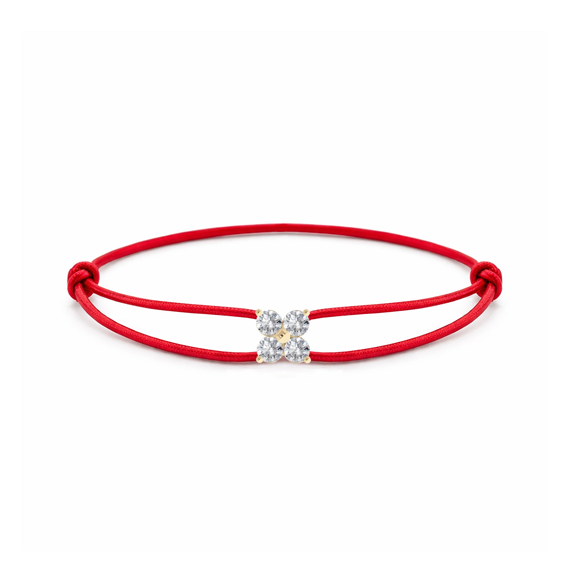 14K Solid Gold Cluster Diamond Red String Bracelet Kabbalah Good Luck Protection