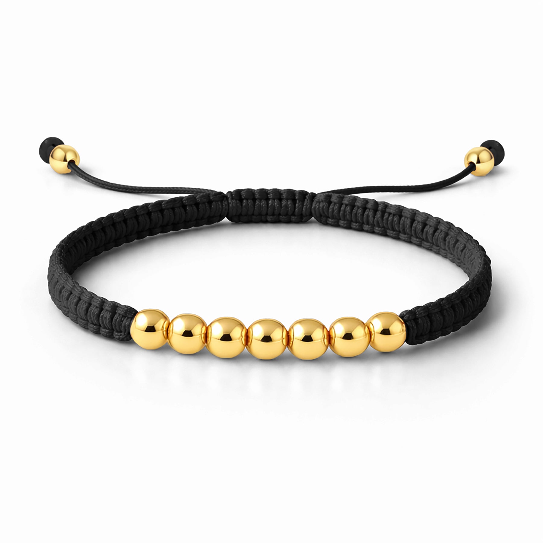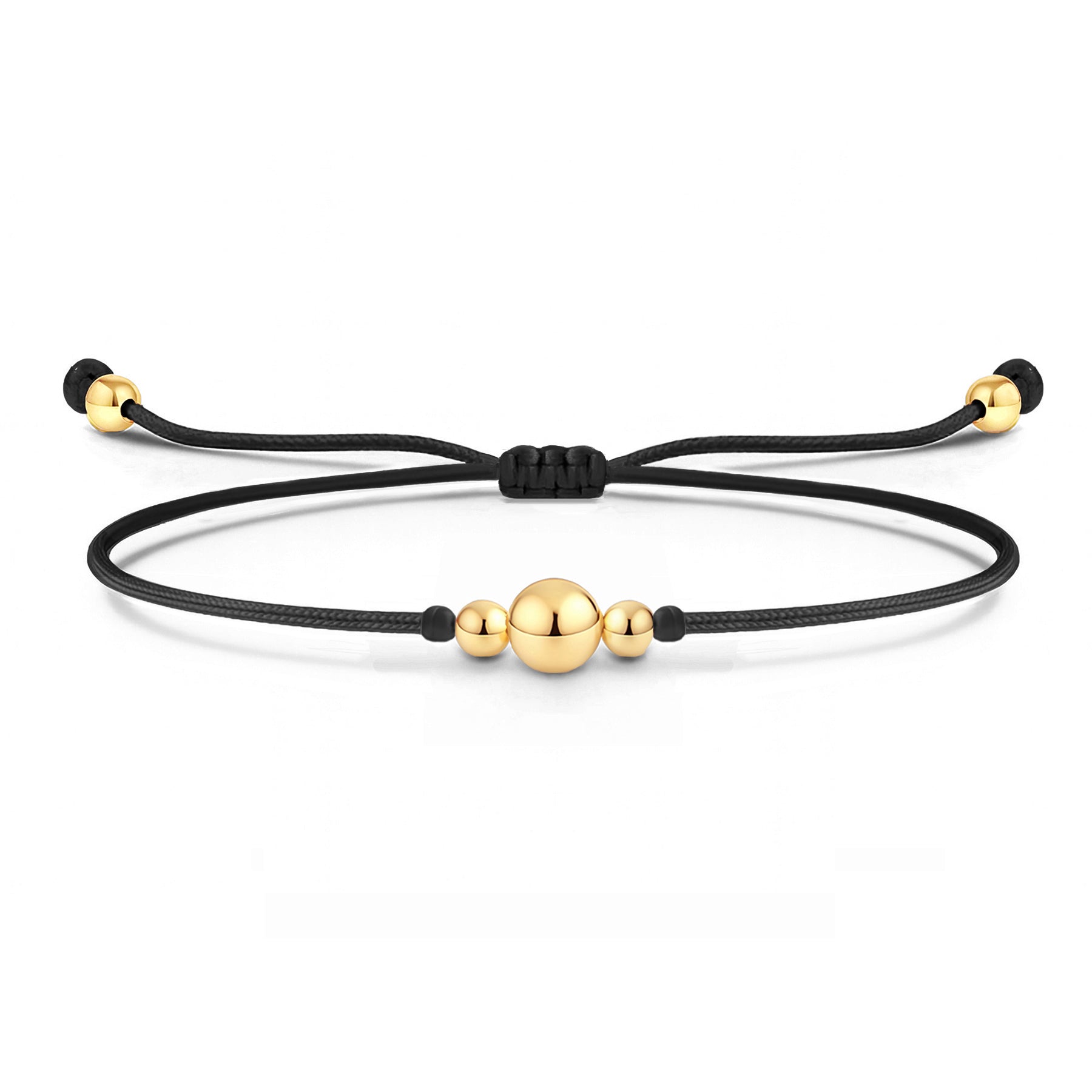 14K Solid Gold Beaded Black String Bracelet Kabbalah Good Luck Protection