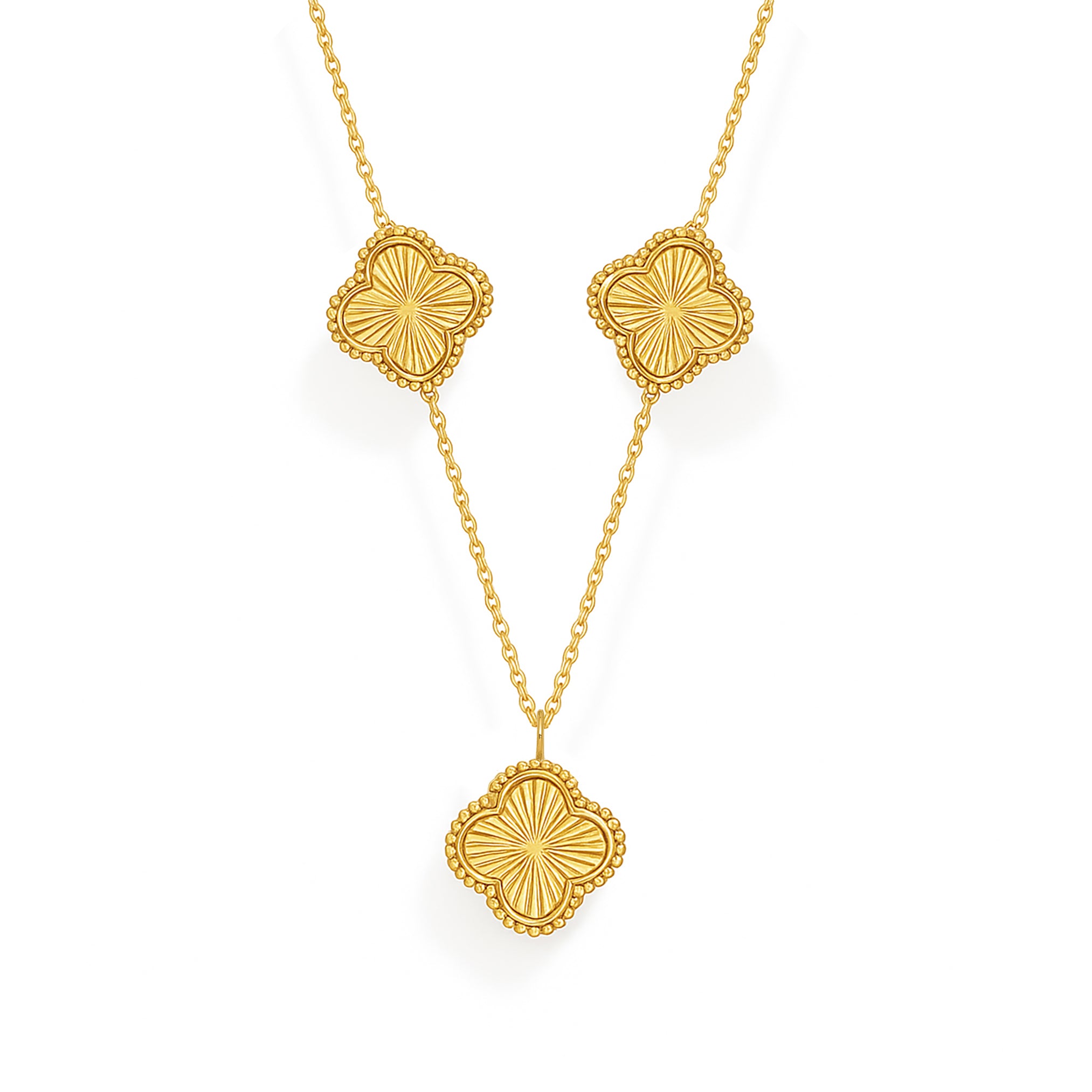 14K Gold Clover Station Long Necklace 30 inch – Multicolor Rainbow Necklace