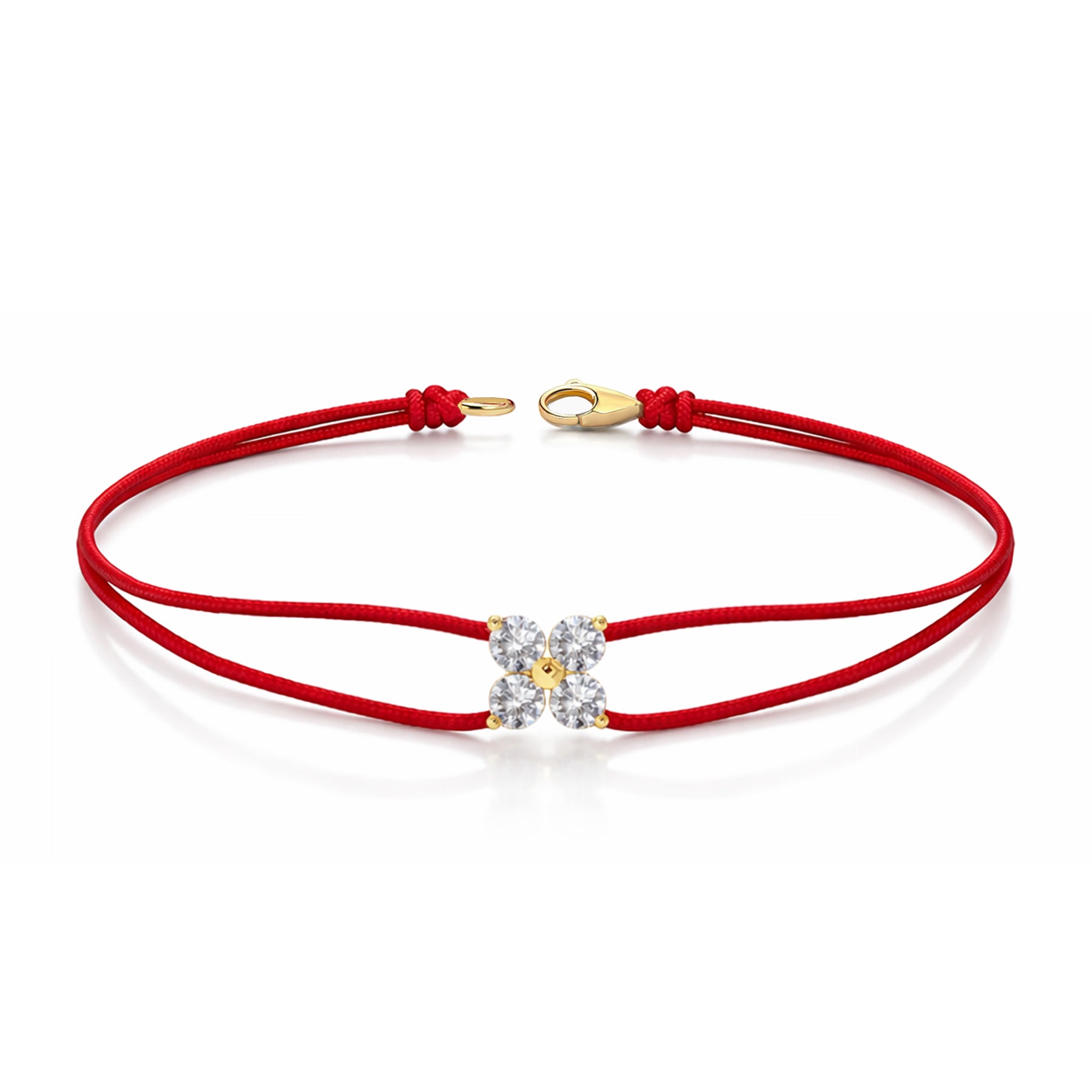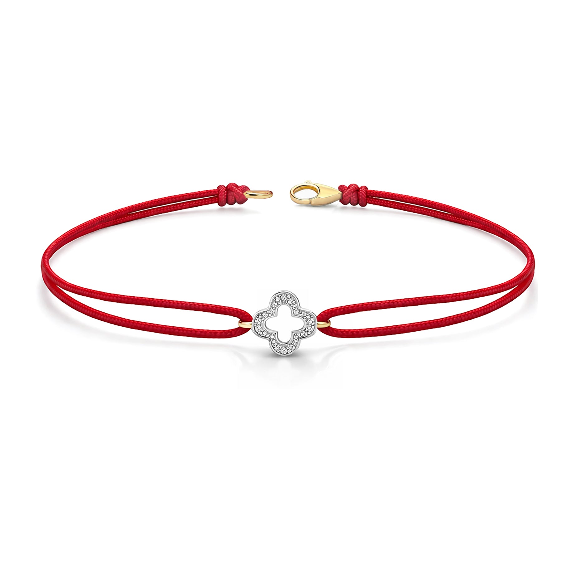 14K Solid Gold Diamond Clover Red String Cord Bracelet