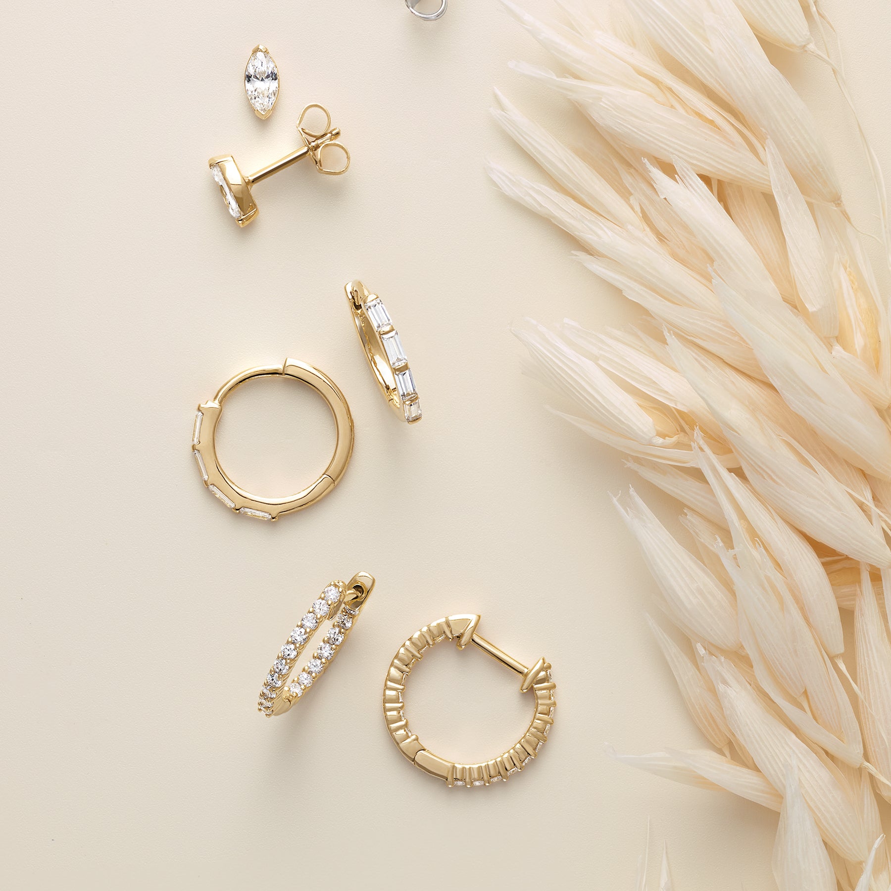 14K Solid Gold Baguette Diamond Huggie Hoop Earrings for Women