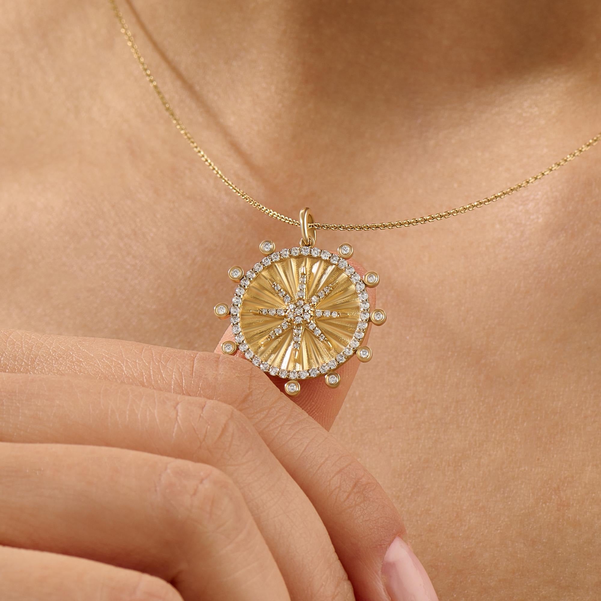 14K Gold Fluted Sunburst Cross Medallion Charm Pendant