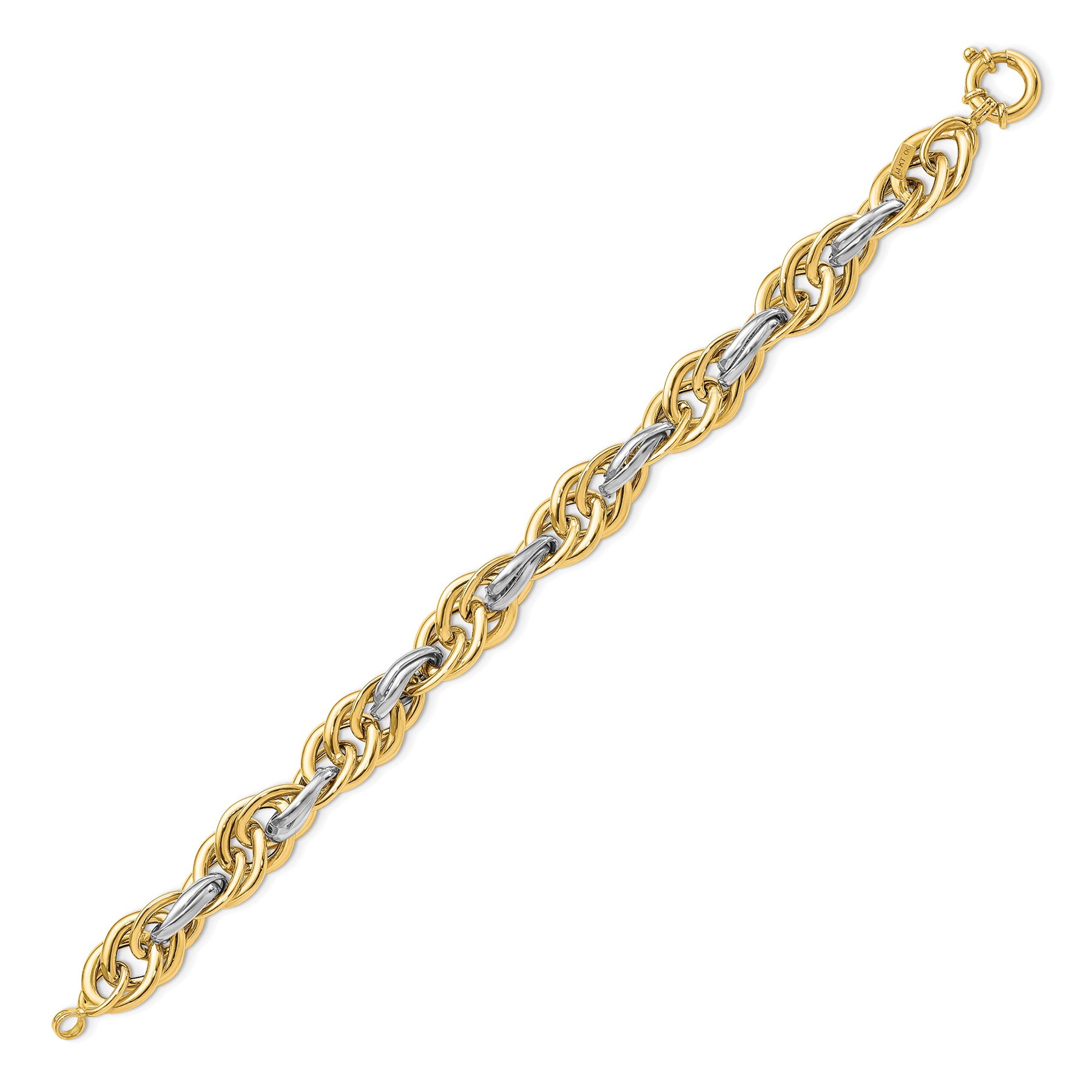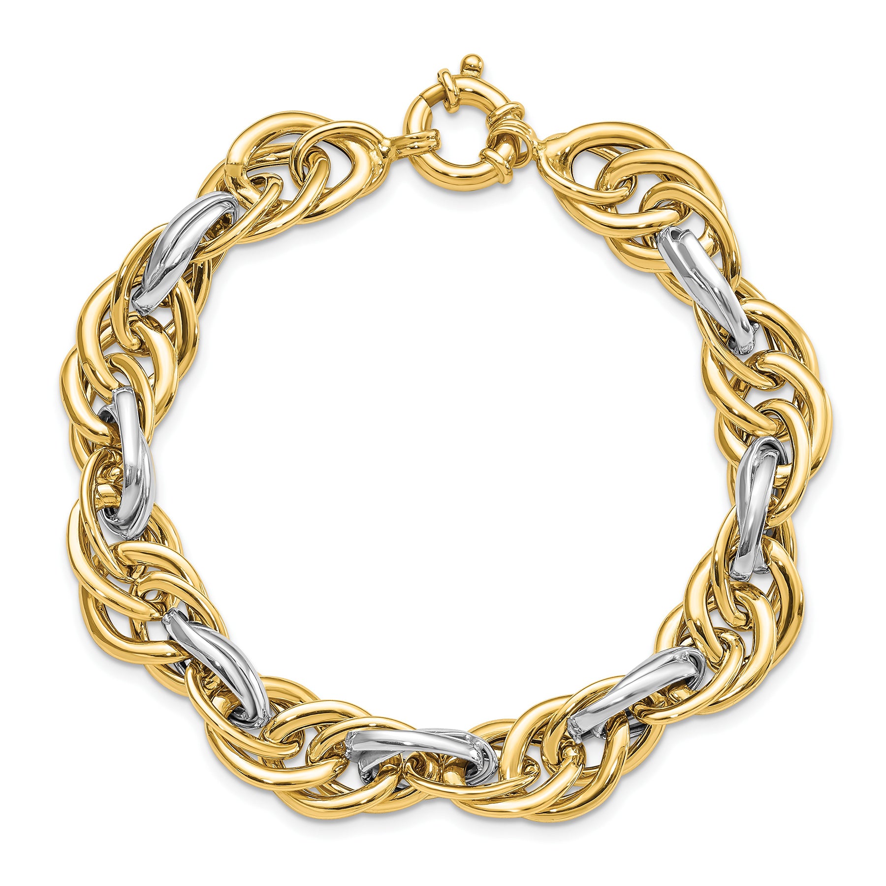 14K Solid Two Tone Gold Chunky Oval Link Chain Bracelet