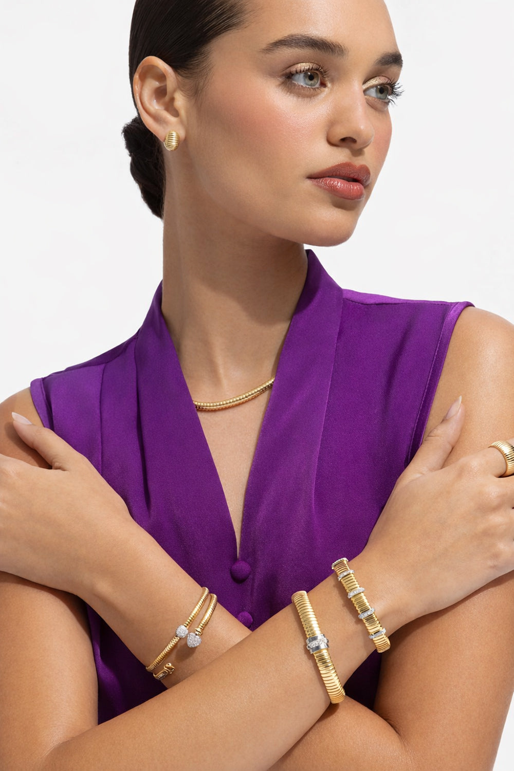 14K Solid Gold Diamond Tubogas Bracelet – Flexible Coil Cuff Bangle