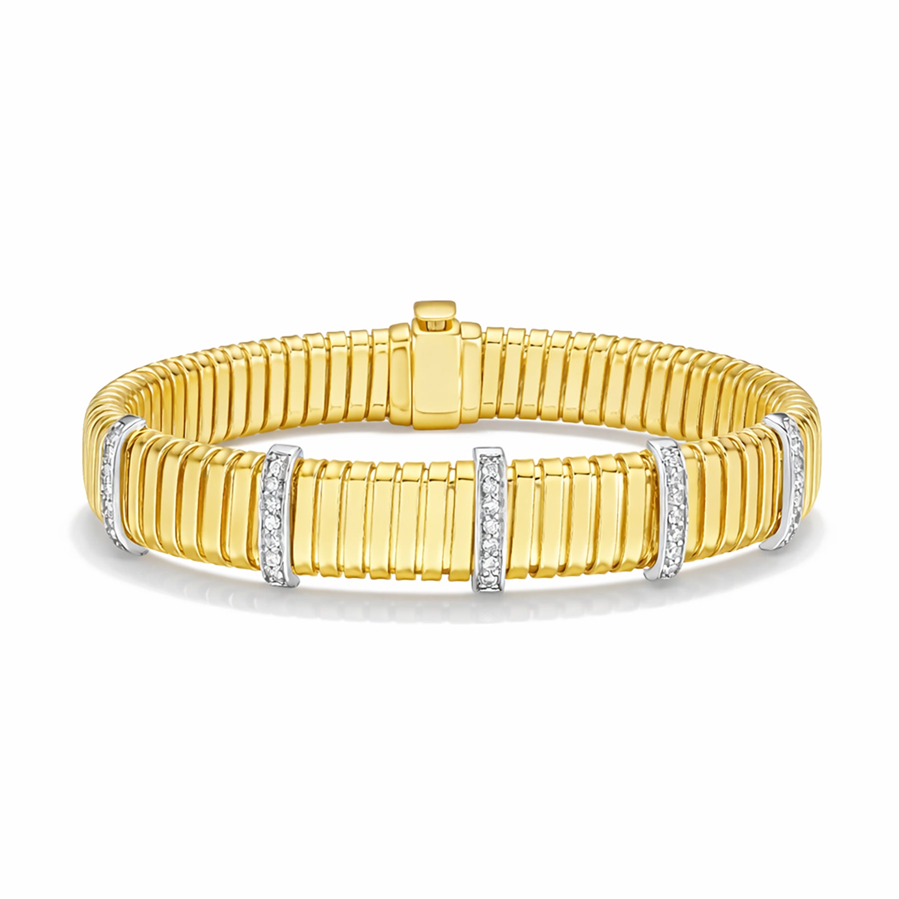 14k Gold Diamond Tubogas Bracelet Flexible Coil Bangle