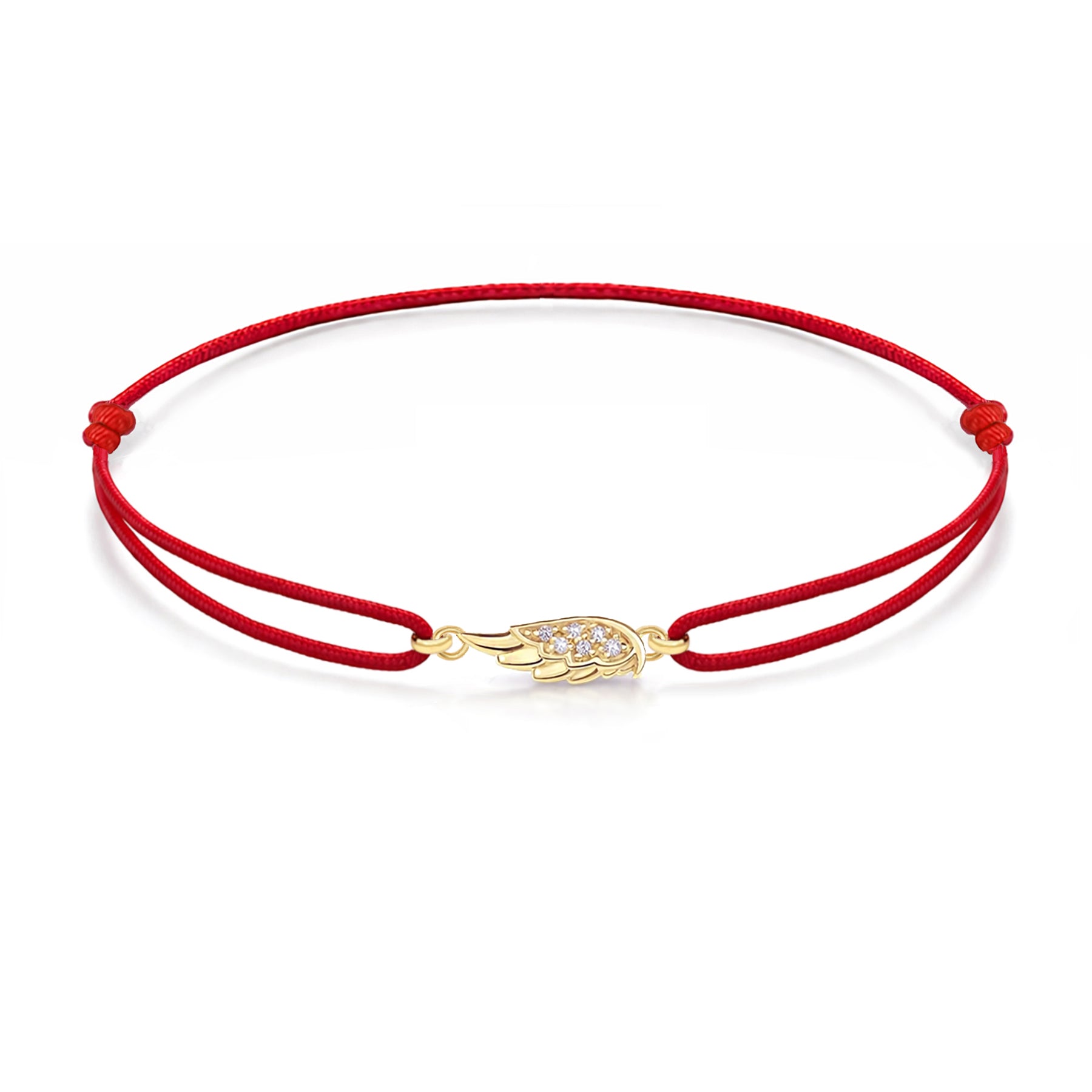 14K Solid Gold Diamond Angel Wing Red String Bracelet Good Luck Protection
