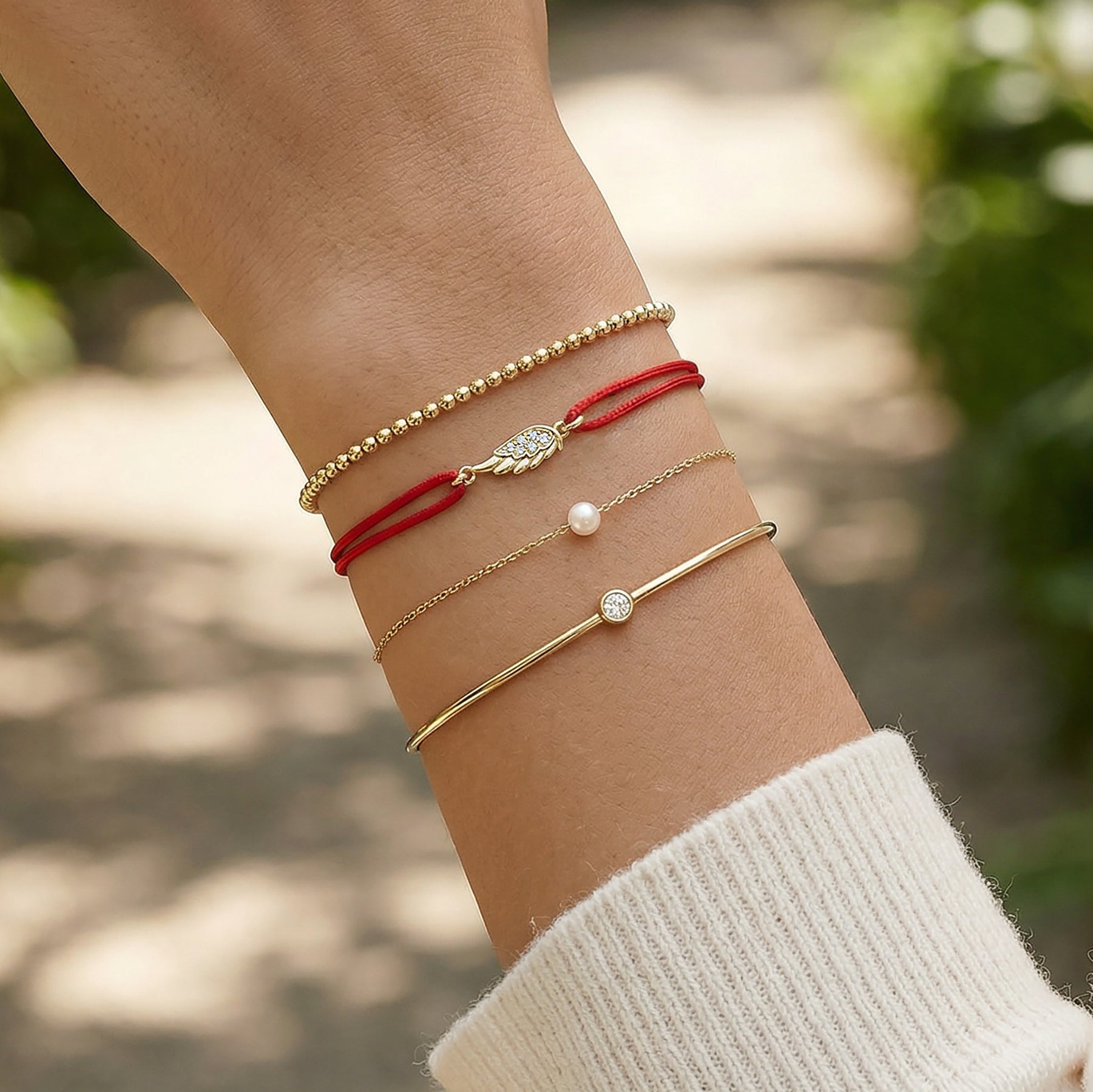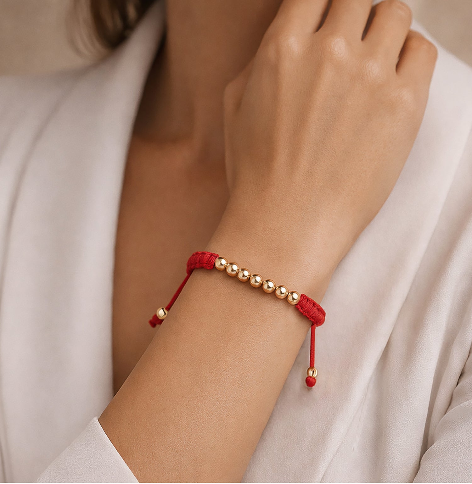 7 Day Good Luck Bracelet – Red String Protection Bracelet 14K Solid Gold Beaded Ball Bracelet (Copy)