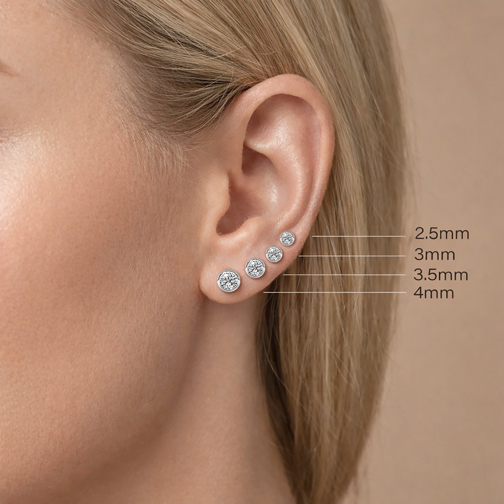 Solid Platinum Bezel Diamond Stud Earrings Pt950 | Hypoallergenic Unisex Studs