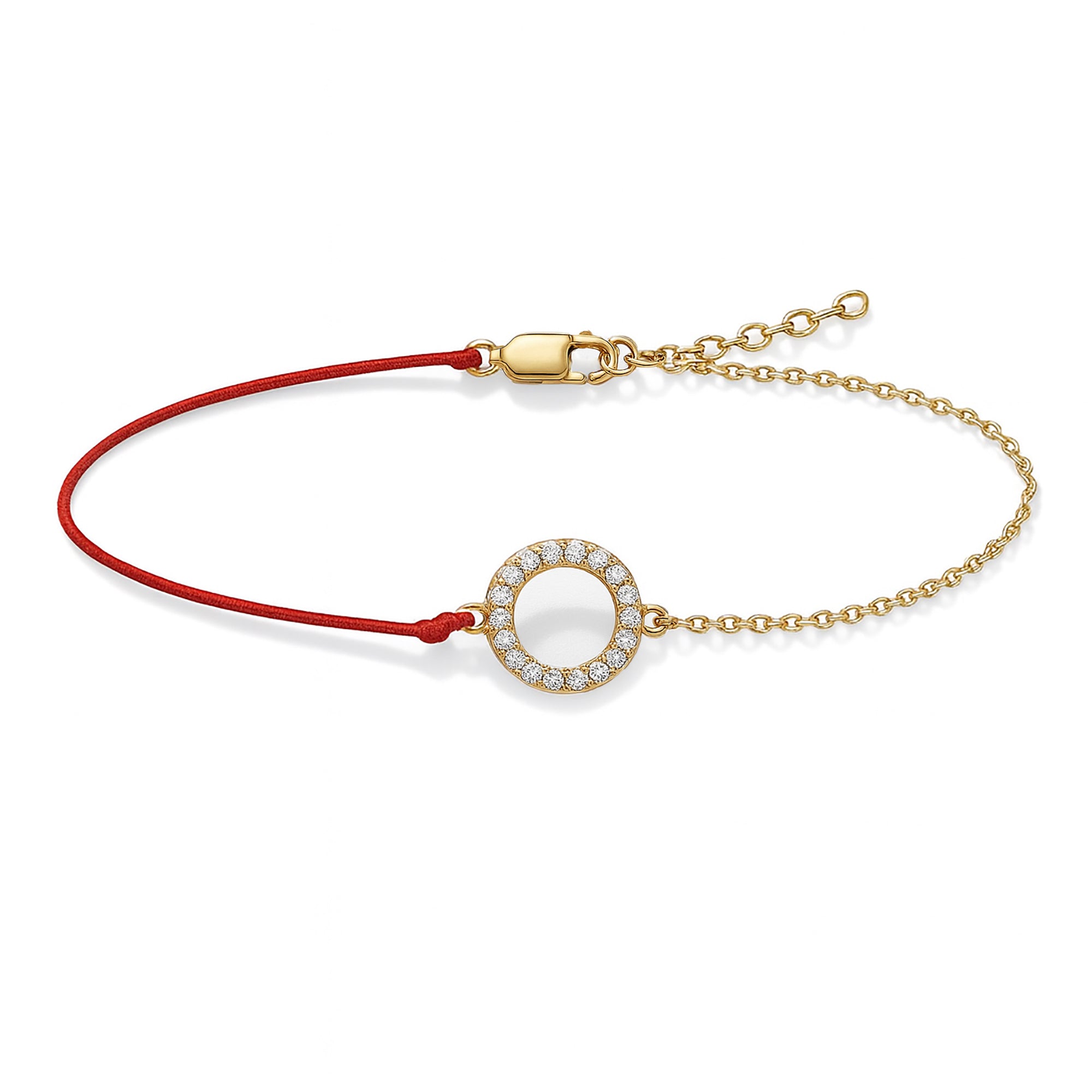 14K Gold Interlocking Circles Red String Bracelet Good Luck Protection