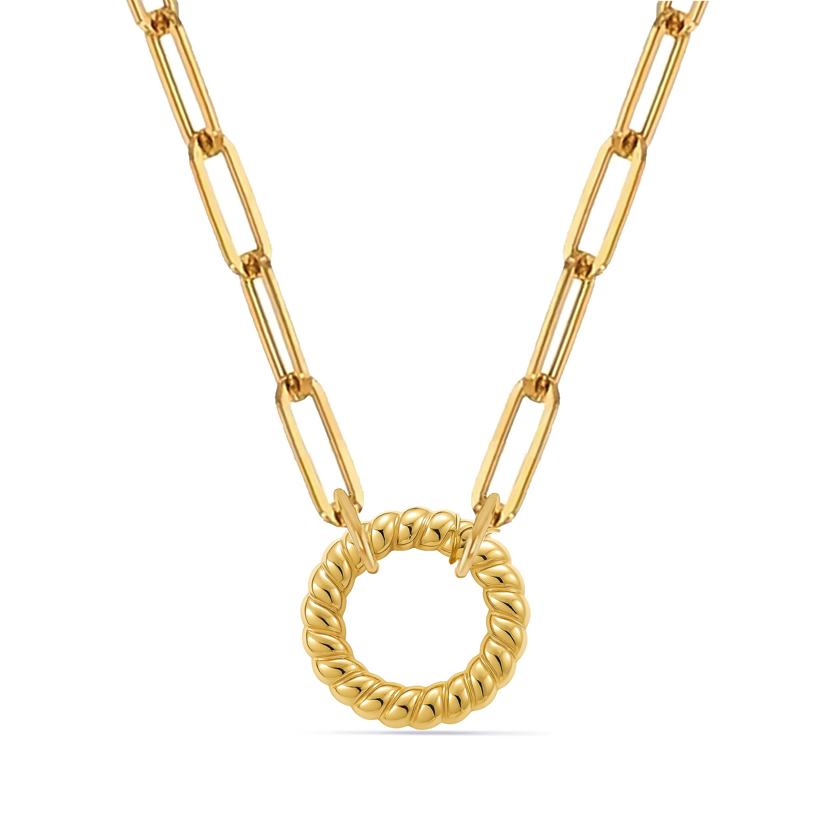 Featuring a chic ribbed design, this real gold charm clip not only holds your cherished charms securely but also adds an eye-catching element of texture to your ensemble. Its versatile functionality makes it a must-have for any jewelry lover, as it serves as a Gold Link Lock or Paperclip Chain Connector Clasp.