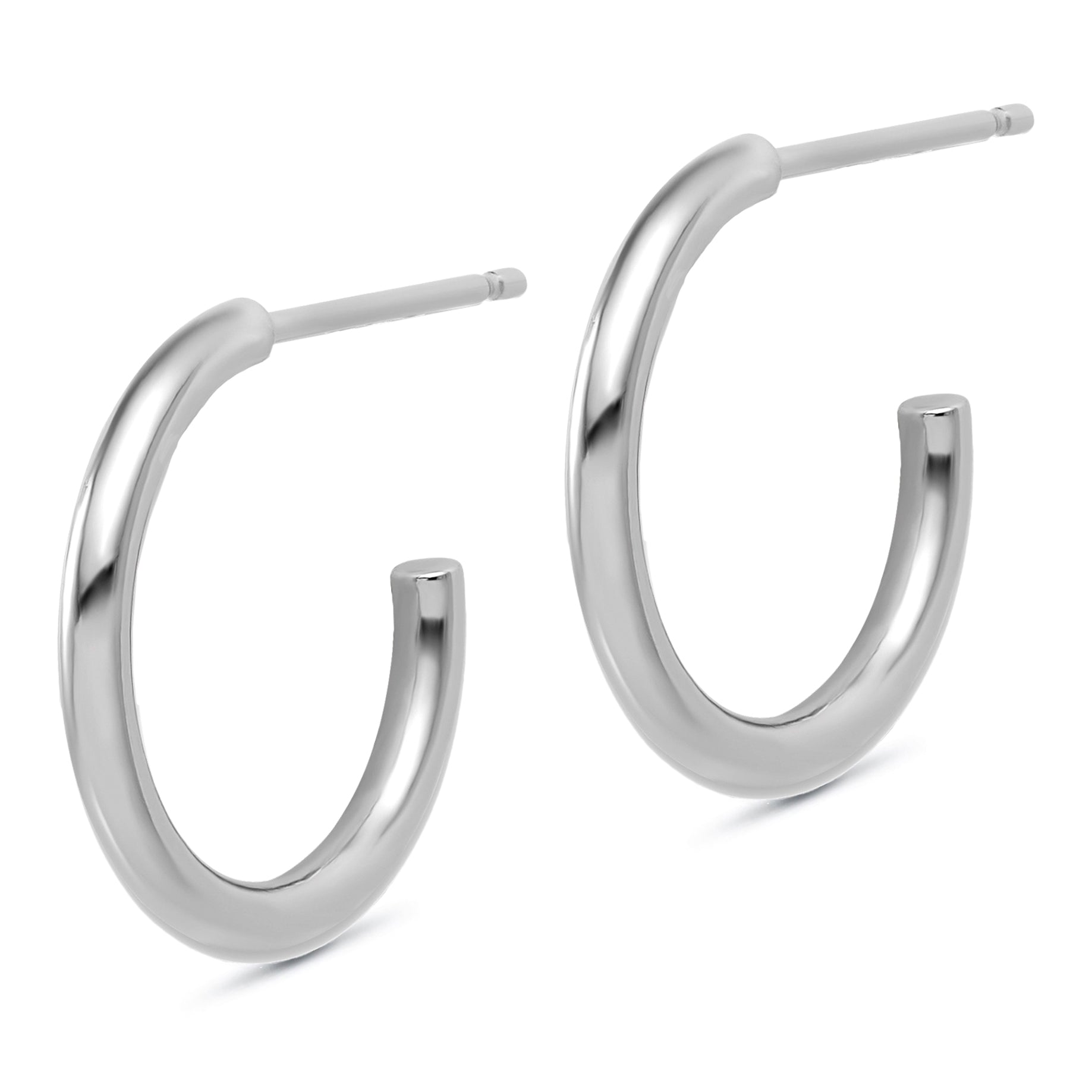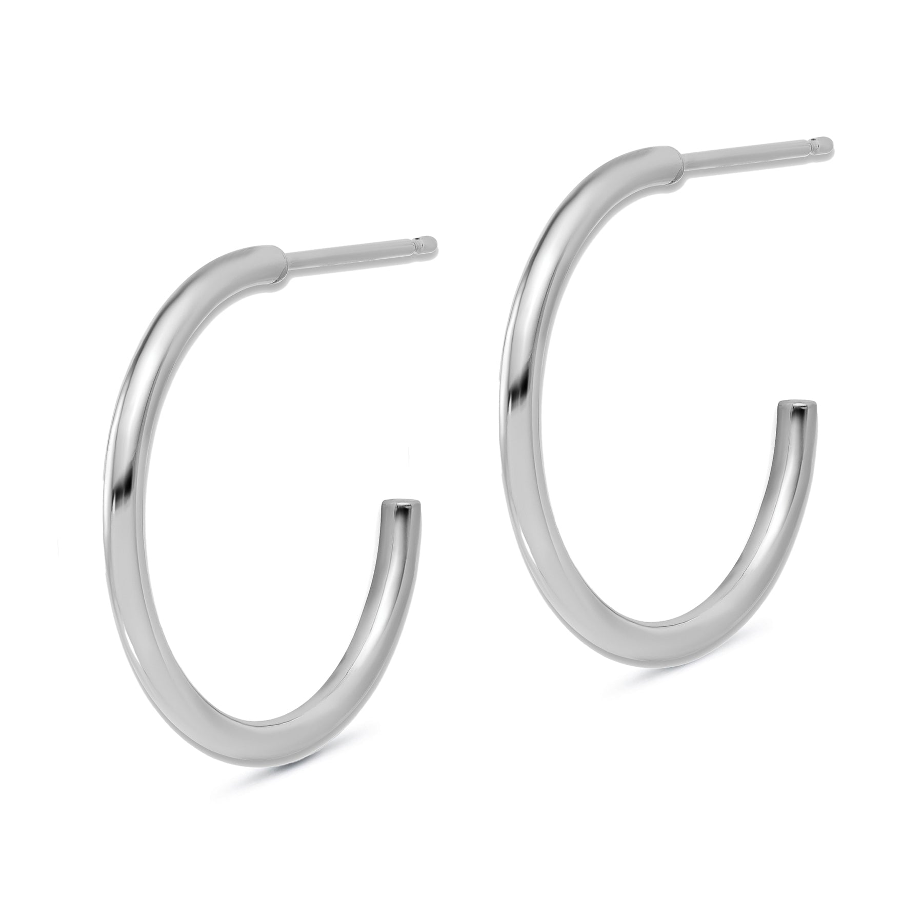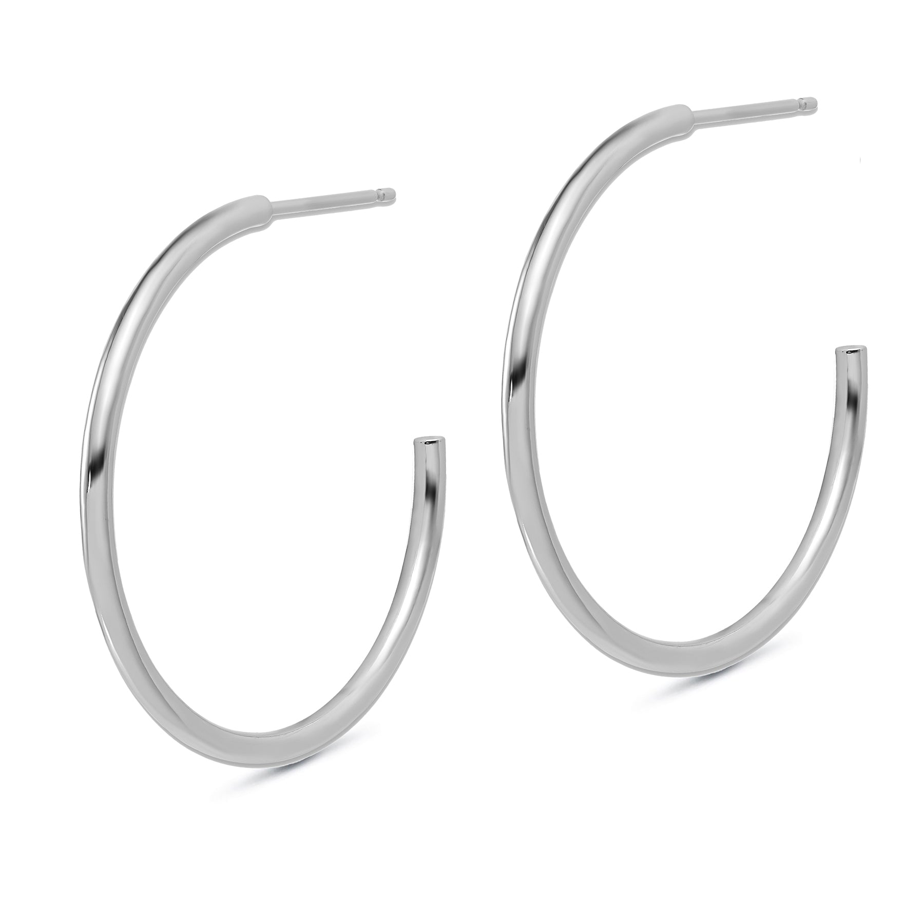These platinum hoop earrings feature a timeless round silhouette with a sleek, high-polish finish. Crafted from naturally white, tarnish-resistant platinum, they offer exceptional durability, hypoallergenic comfort, and lasting brilliance.