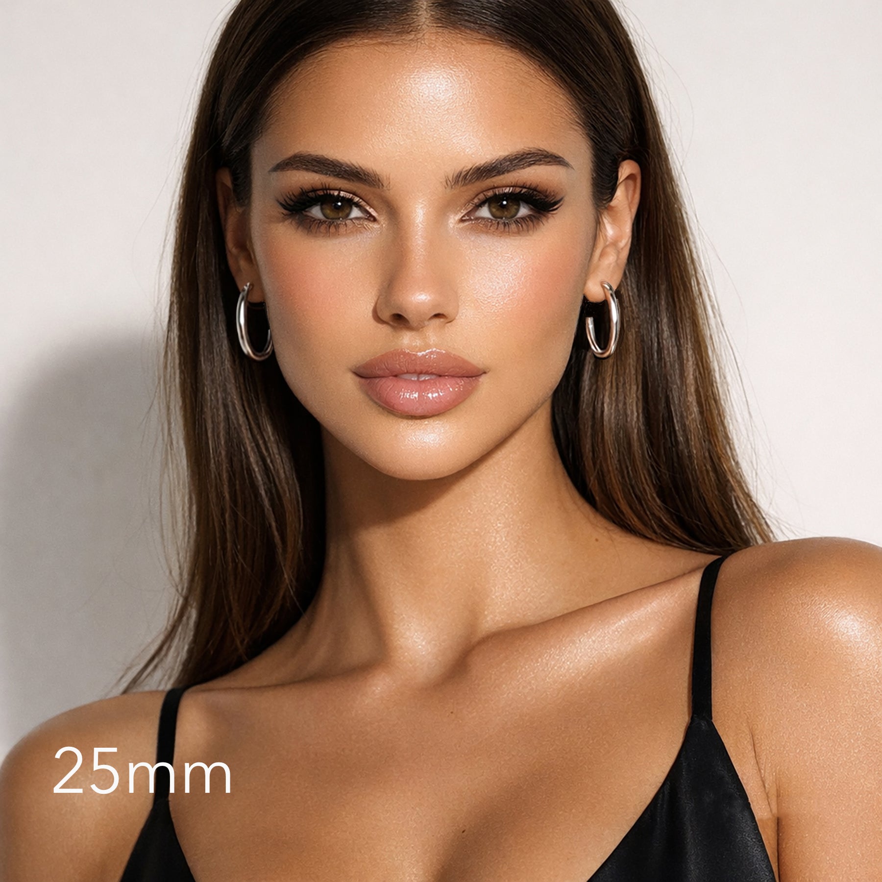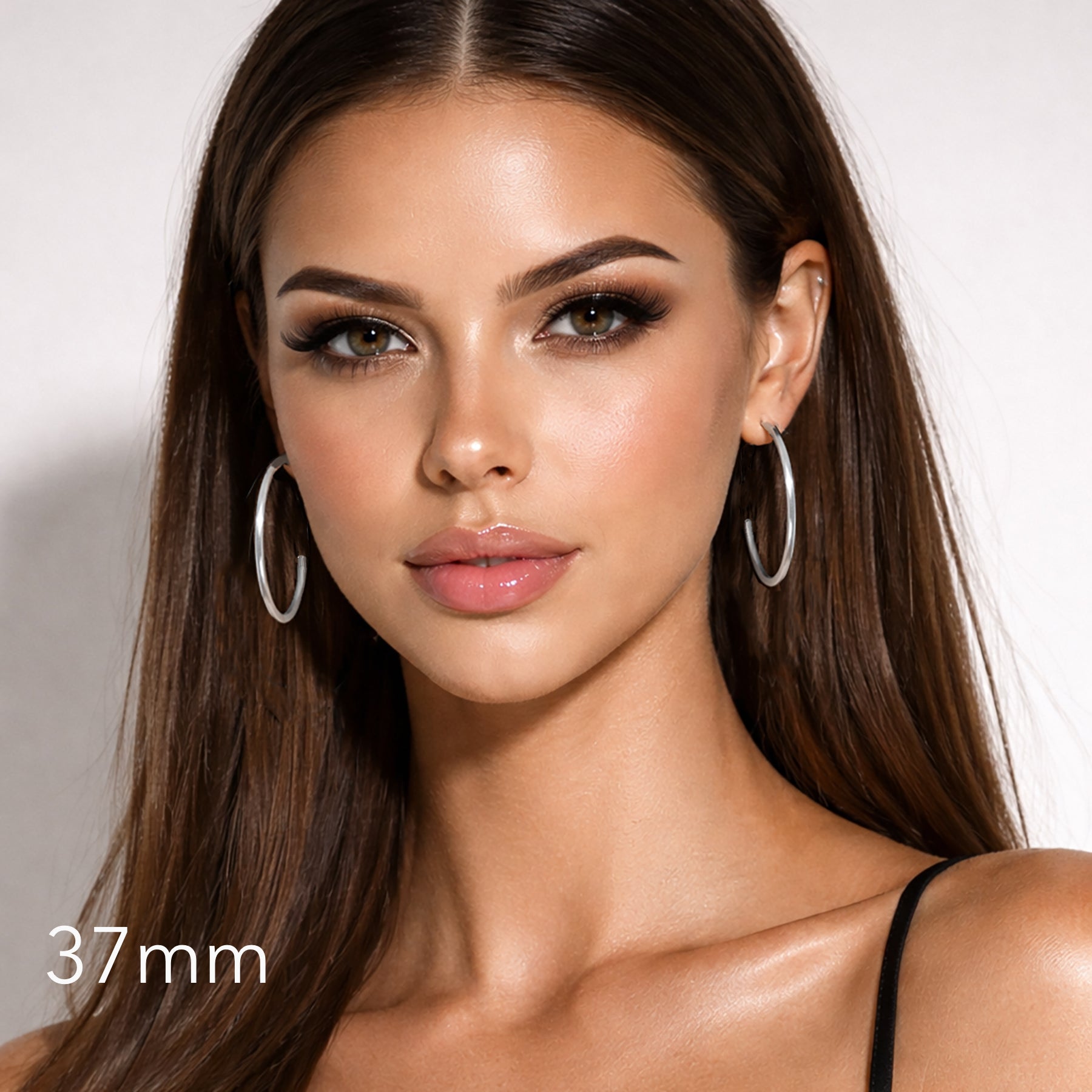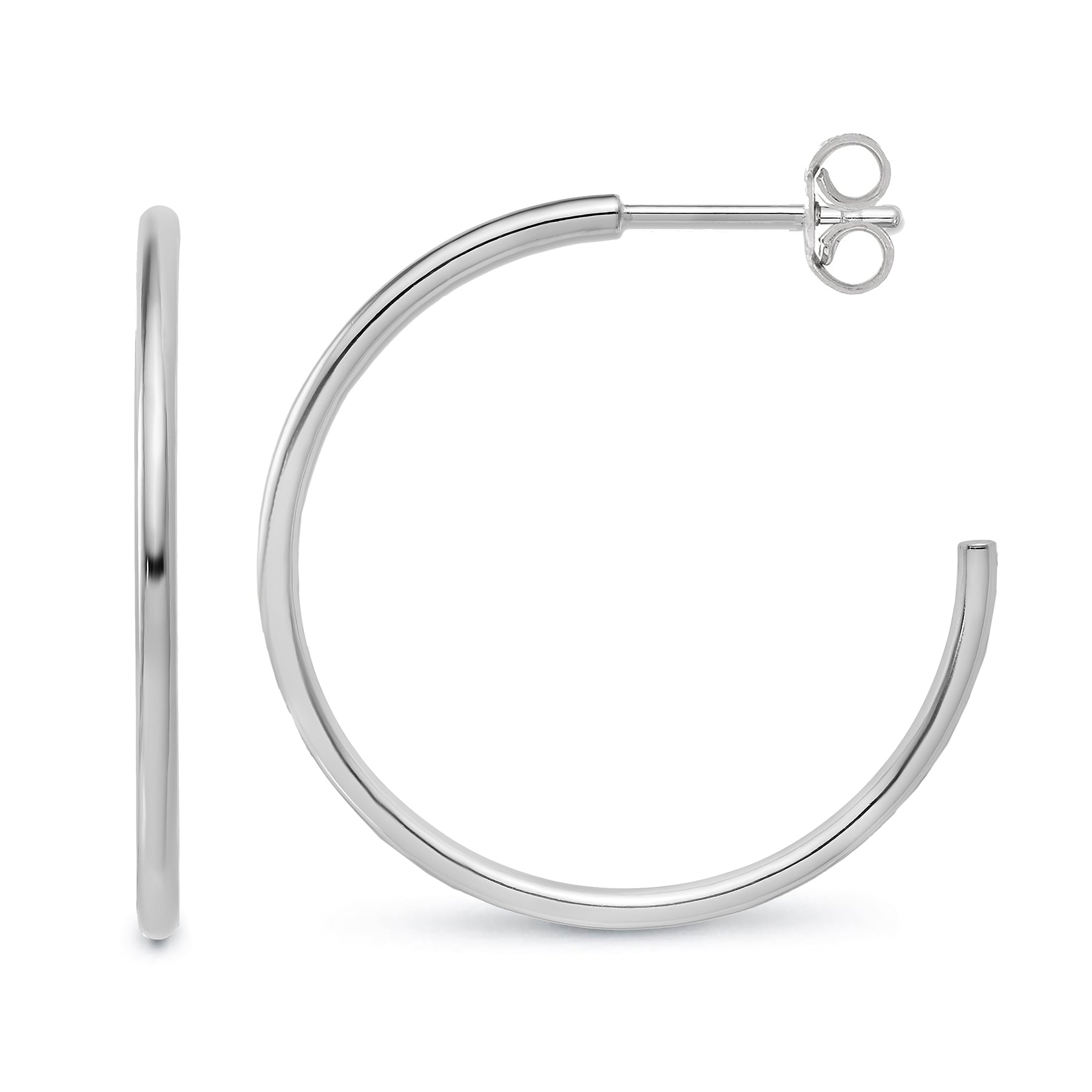 These platinum hoop earrings feature a timeless round silhouette with a sleek, high-polish finish. Crafted from naturally white, tarnish-resistant platinum, they offer exceptional durability, hypoallergenic comfort, and lasting brilliance.