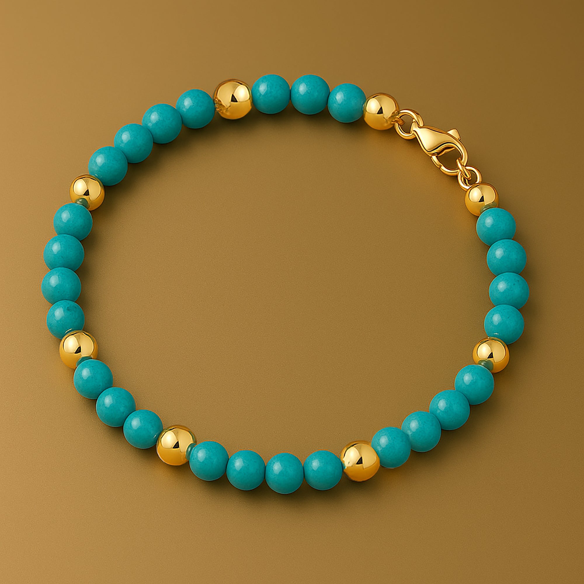 Elegant and timeless, this 14K solid gold and turquoise beaded bracelet combines natural turquoise gemstones with polished gold beads for a refined contrast. Each piece is handcrafted for durability and luxury. Perfect for everyday wear or gifting, it’s a unisex design that pairs beautifully with any style — from casual to formal.