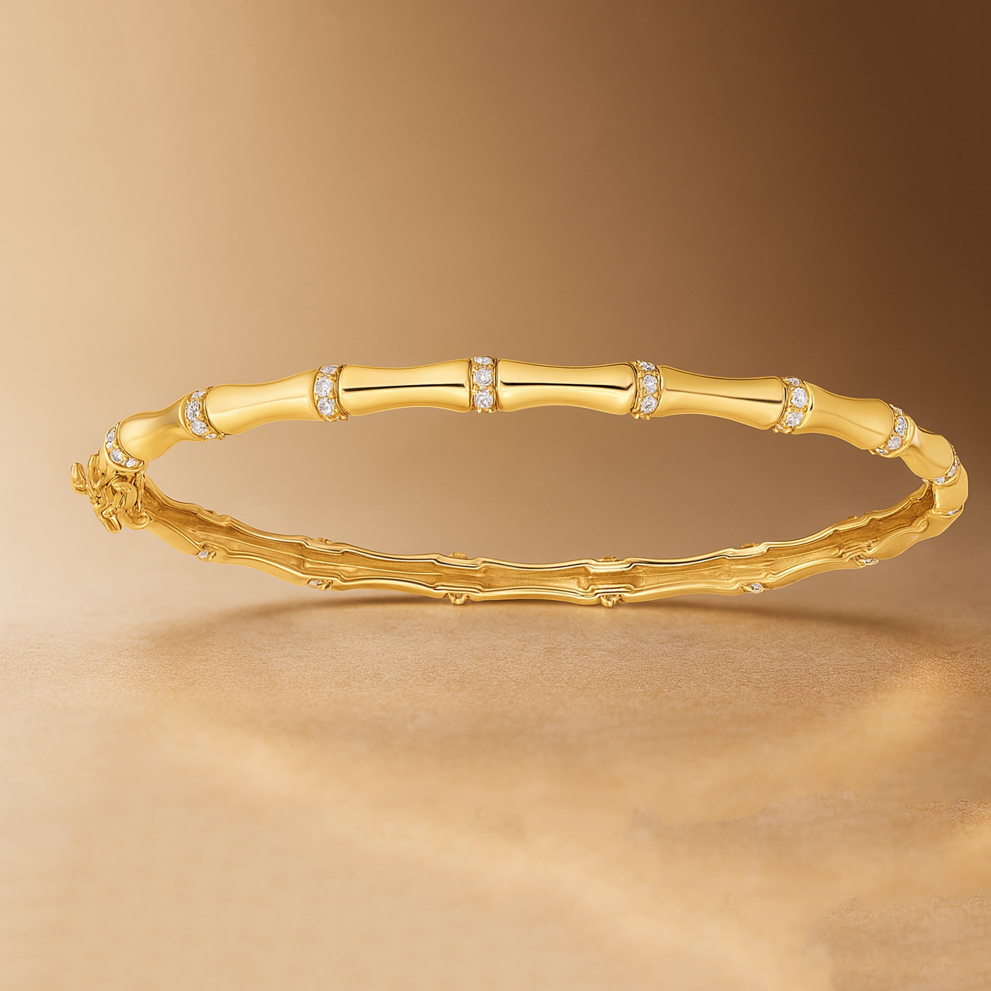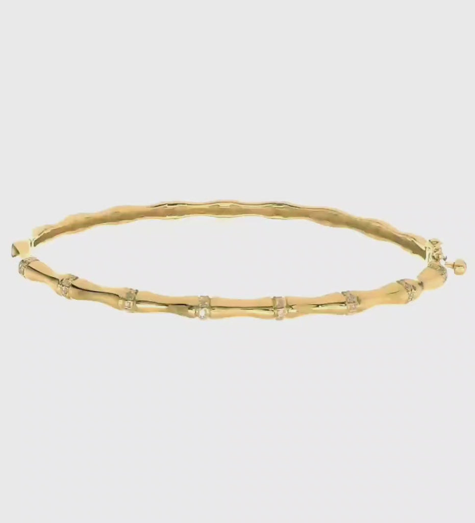 14K Gold Diamond Bamboo Hinged Bangle Bracelet