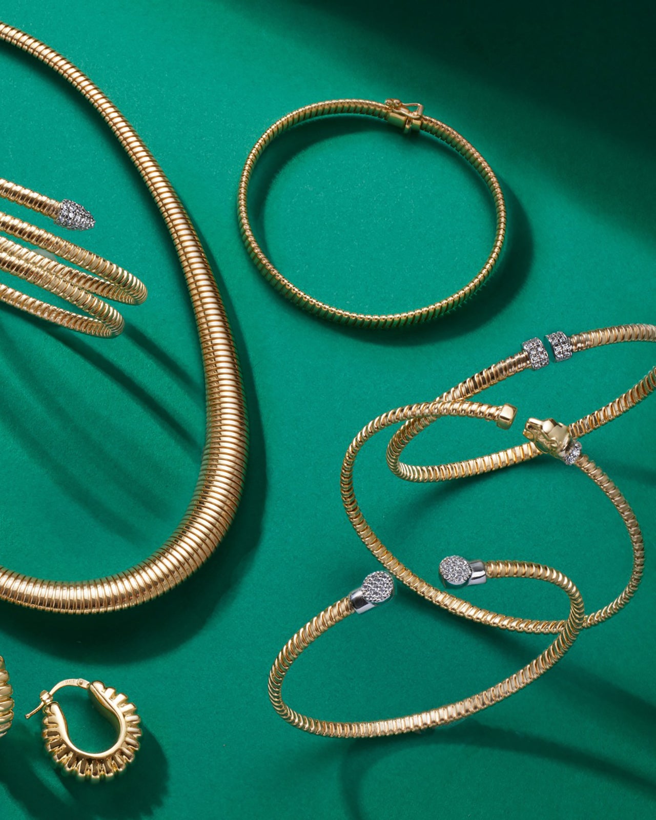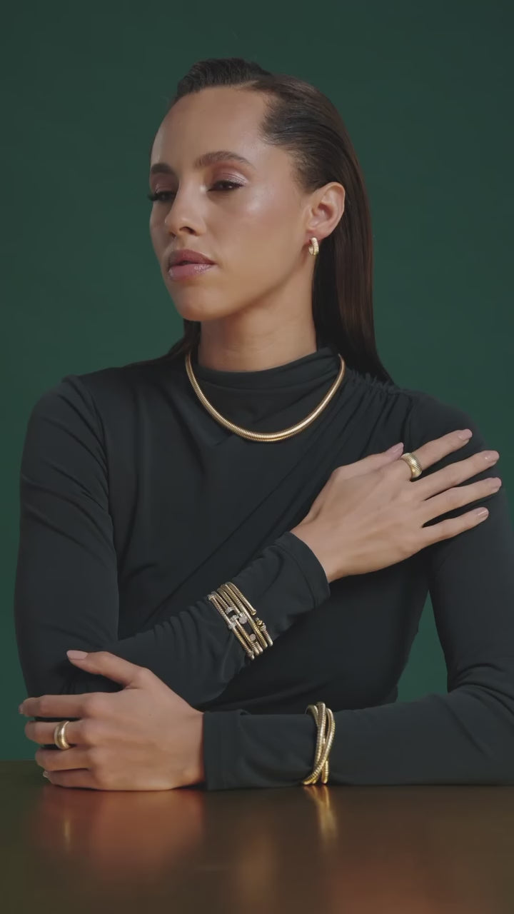 The flexible coil bracelet construction allows for easy wear while maintaining a bold, sculptural look. Designed for women who love statement jewelry, this diamond gold cuff bracelet is perfect for everyday wear, stacking, or gifting as a luxury fine jewelry piece.