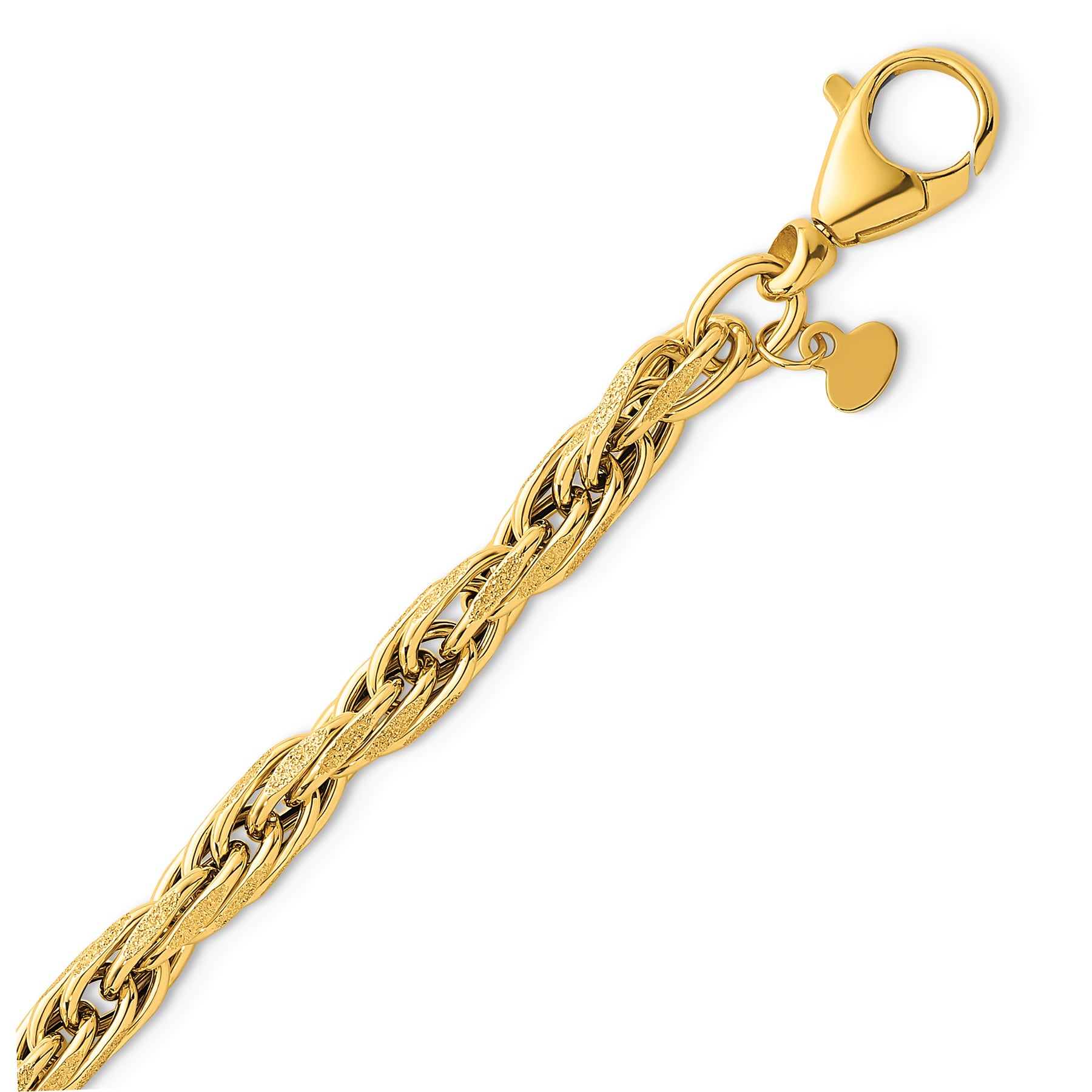 Made from 100% genuine 14K solid gold (not plated or filled), this Italian rope bracelet delivers a classic yet bold look that never goes out of style. Finished with a secure lobster clasp, it’s perfect worn alone or layered with other fine gold pieces.