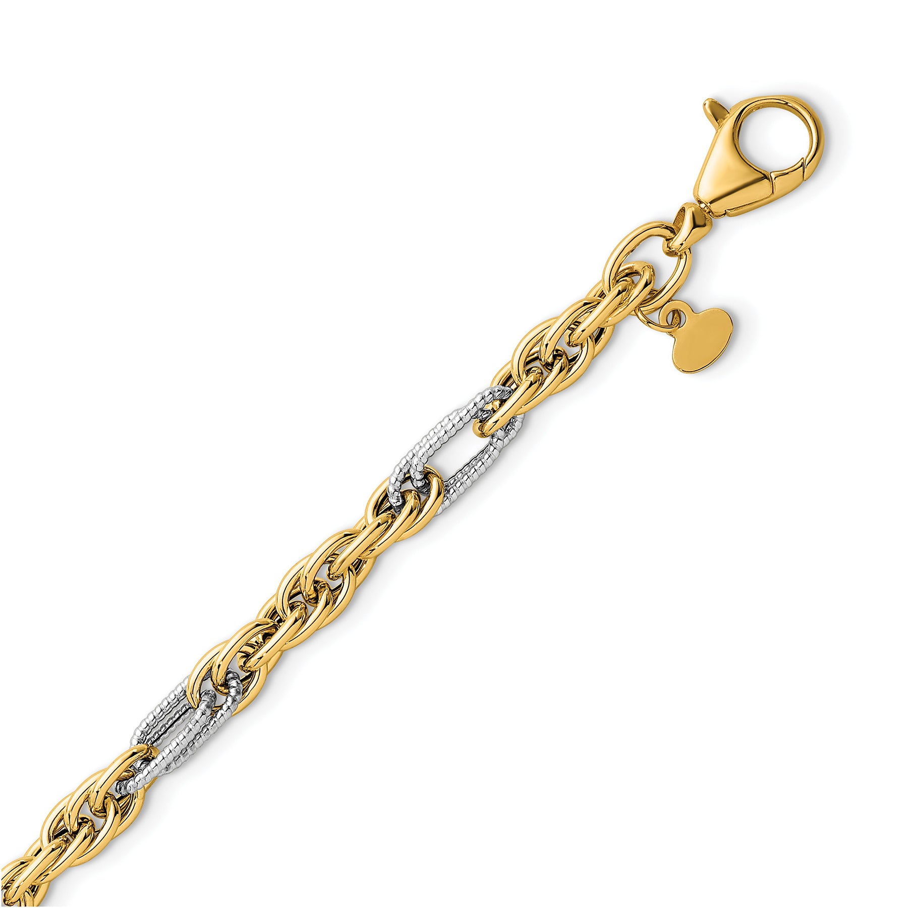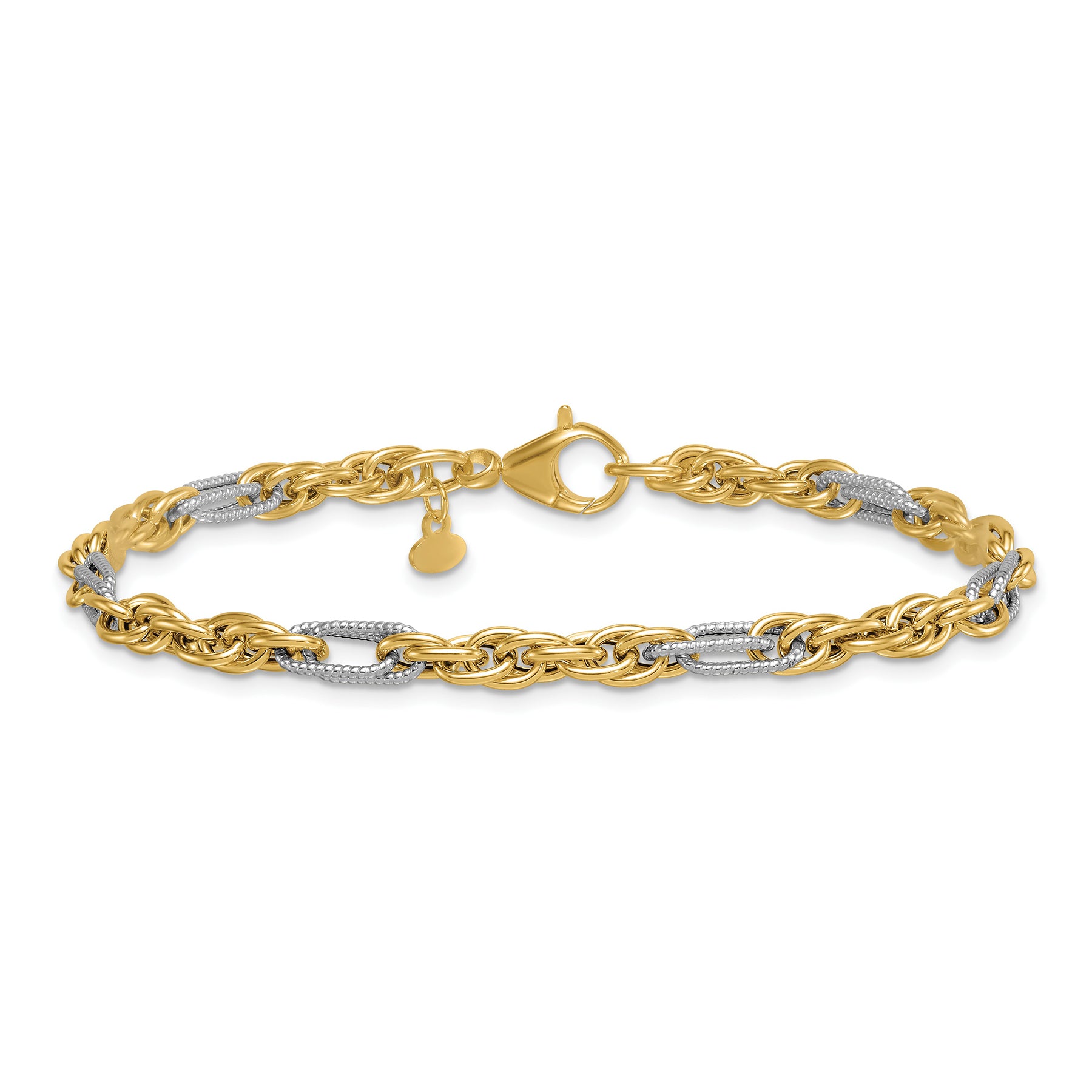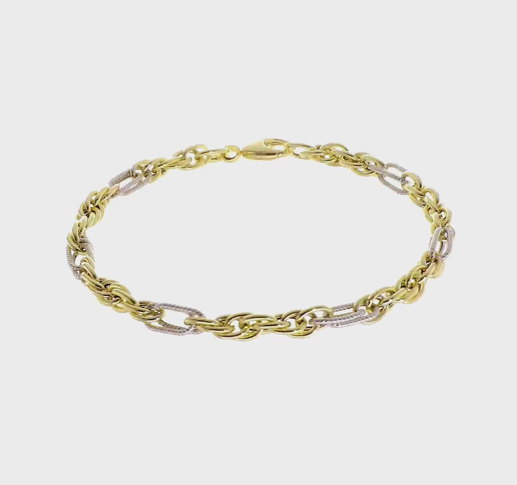 14K Solid Two Tone Gold Rope Chain Bracelet for Women, Men