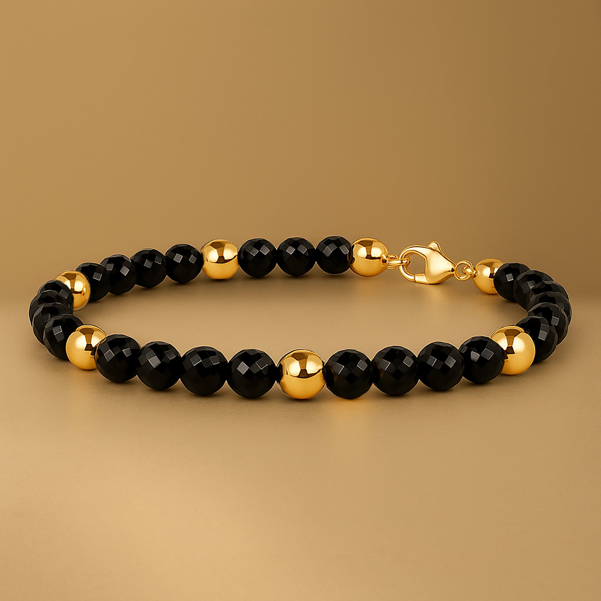 Elegant and timeless, this 14K solid gold and black onyx beaded bracelet combines faceted natural onyx gemstones with polished gold beads for a refined contrast. Each piece is handcrafted for durability and luxury. Perfect for everyday wear or gifting, it’s a unisex design that pairs beautifully with any style — from casual to formal.