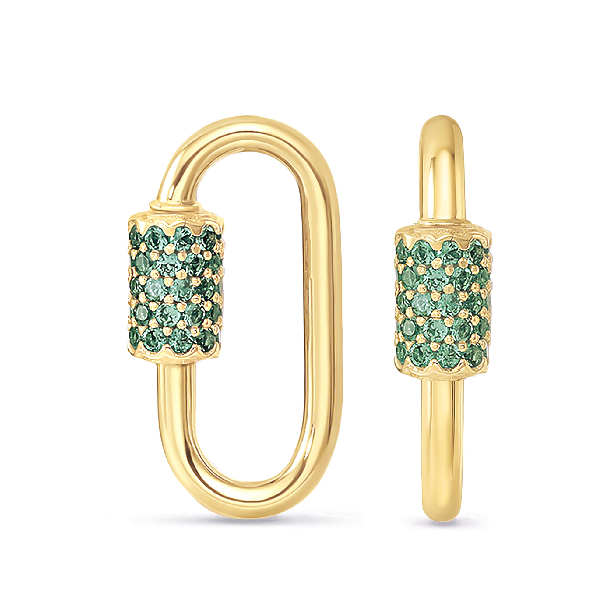 Adorned with vibrant emerald, sapphire cubic zirconia stones, this Carabiner Lock adds a burst of color and sparkle to your jewelry collection. The combination of gemstones enhances its visual appeal, creating a captivating and elegant accessory