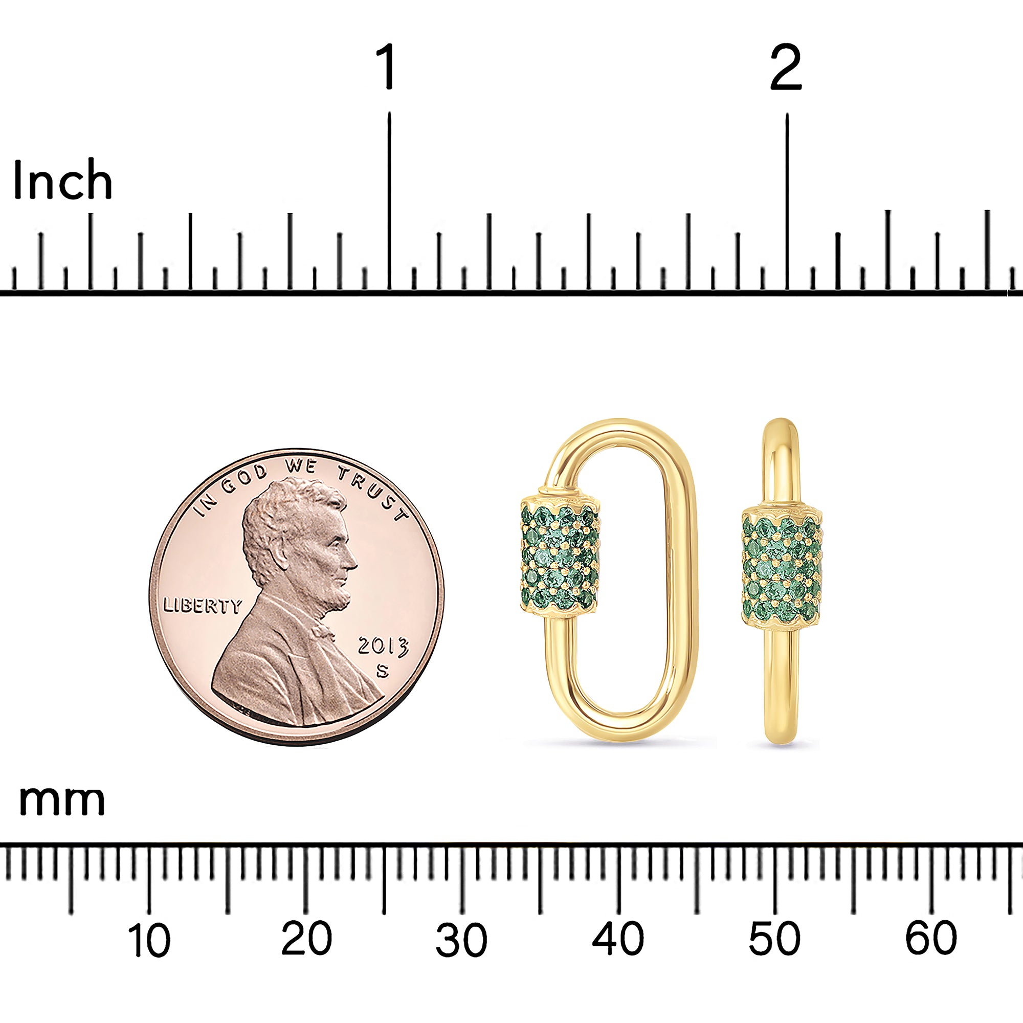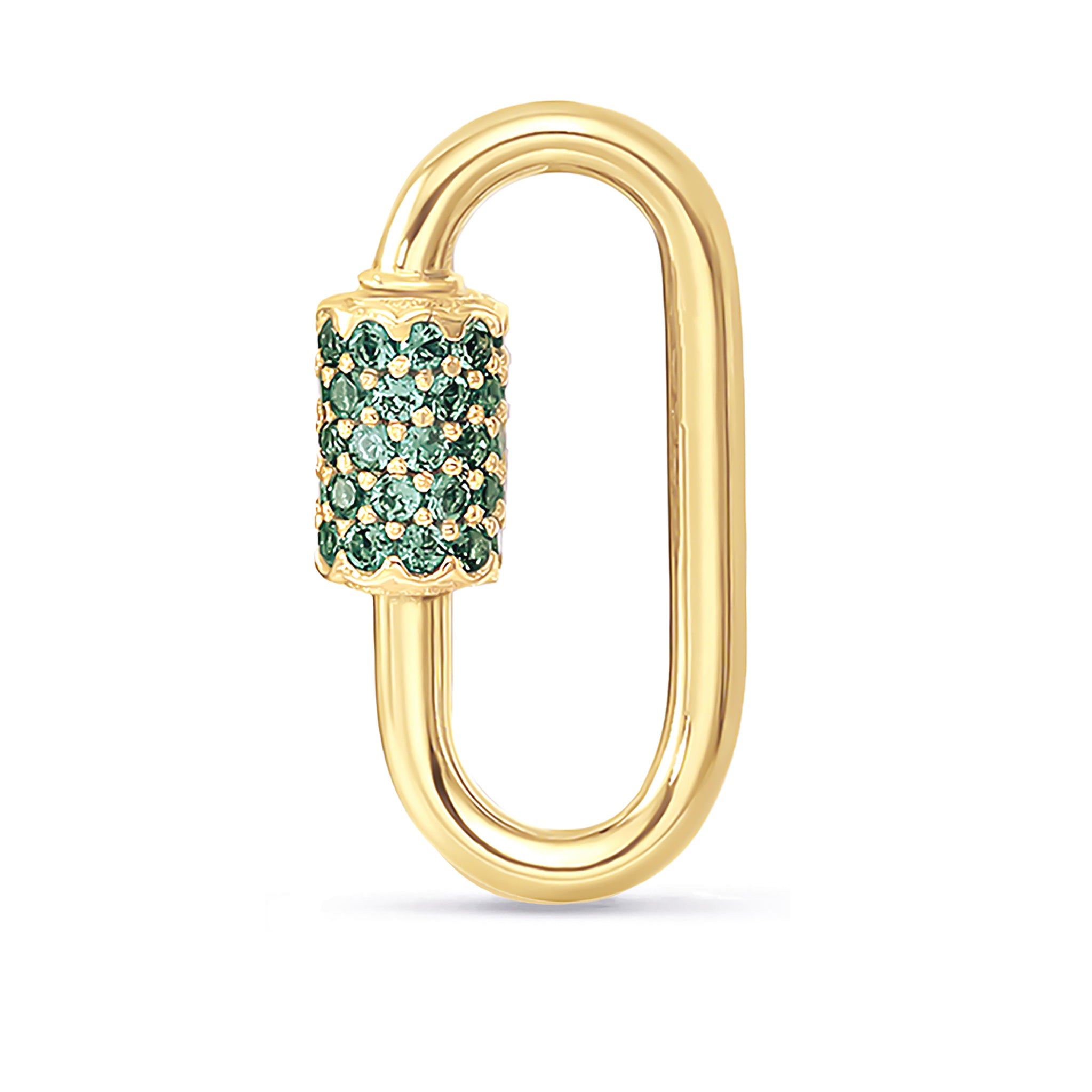 Adorned with vibrant emerald, sapphire cubic zirconia stones, this Carabiner Lock adds a burst of color and sparkle to your jewelry collection. The combination of gemstones enhances its visual appeal, creating a captivating and elegant accessory