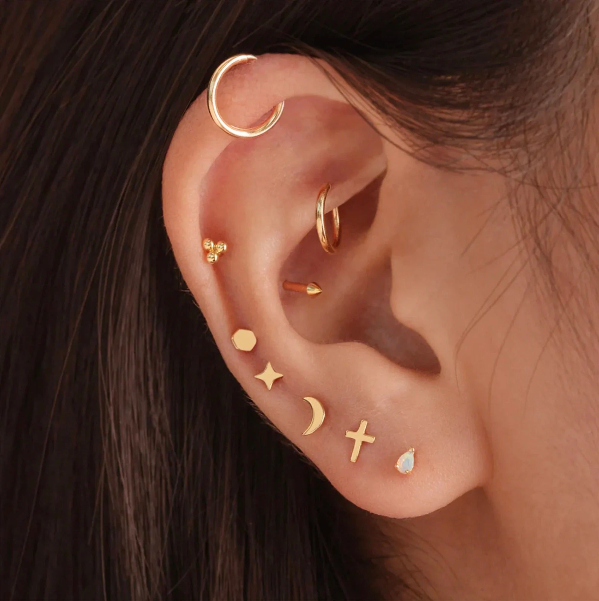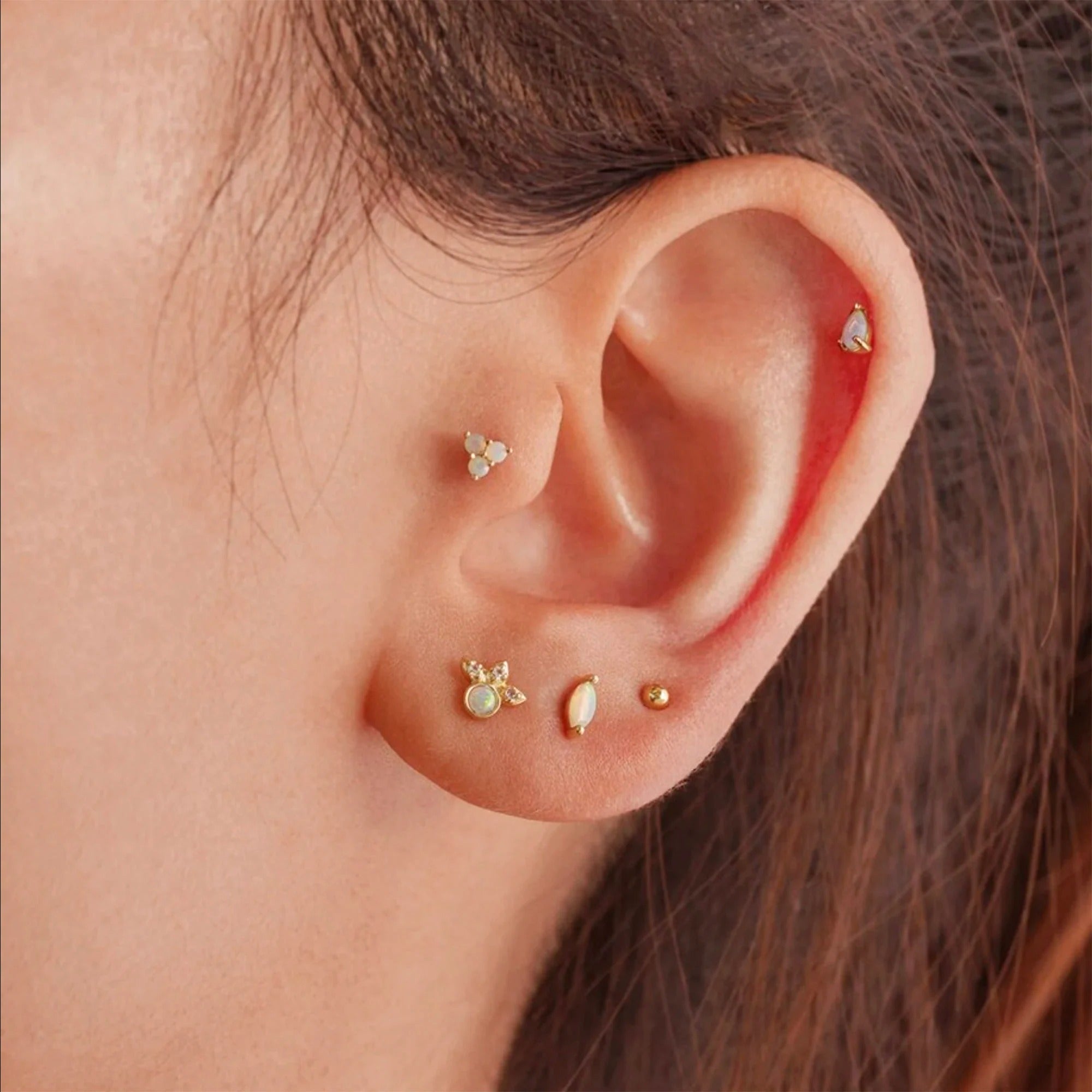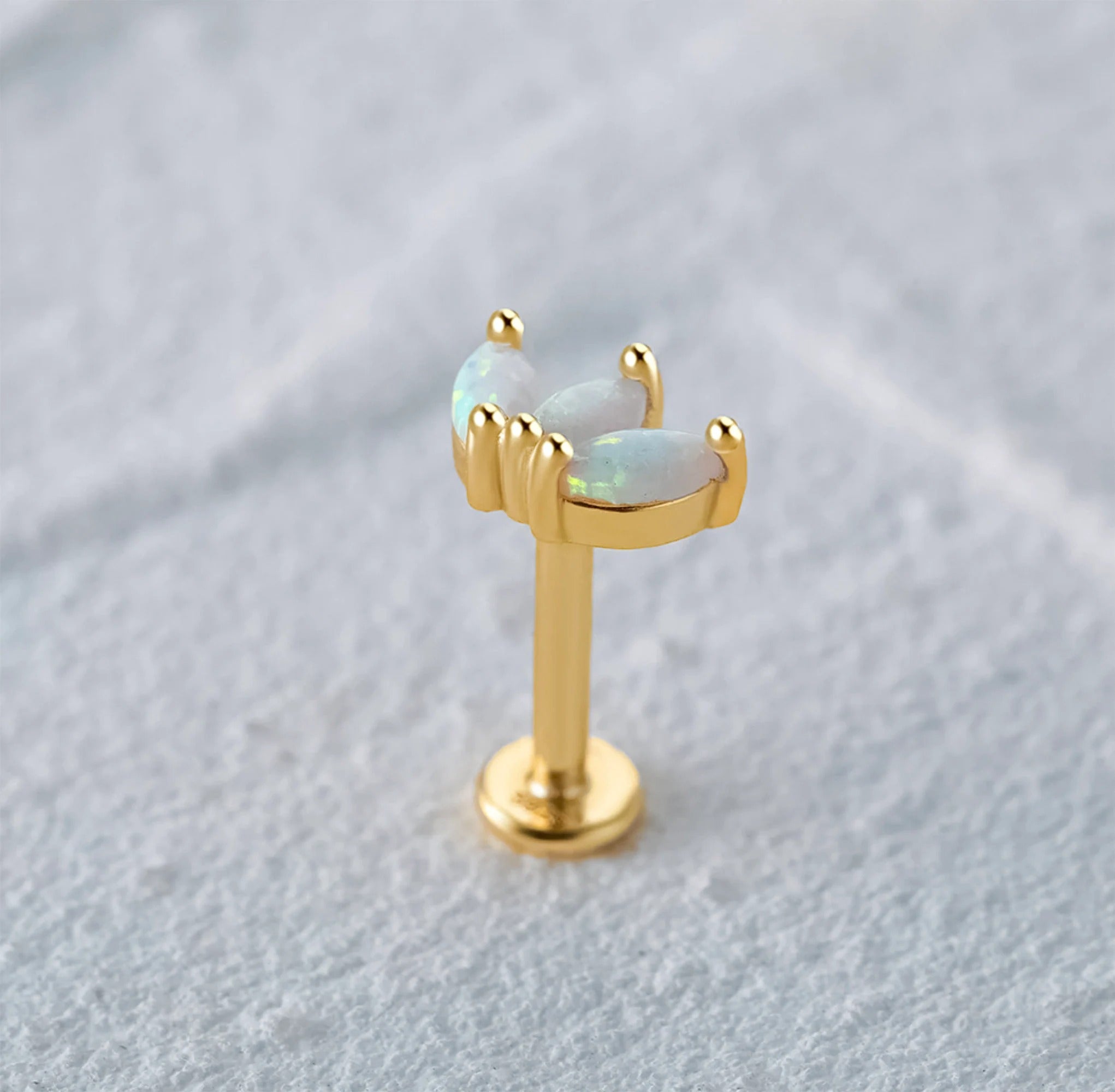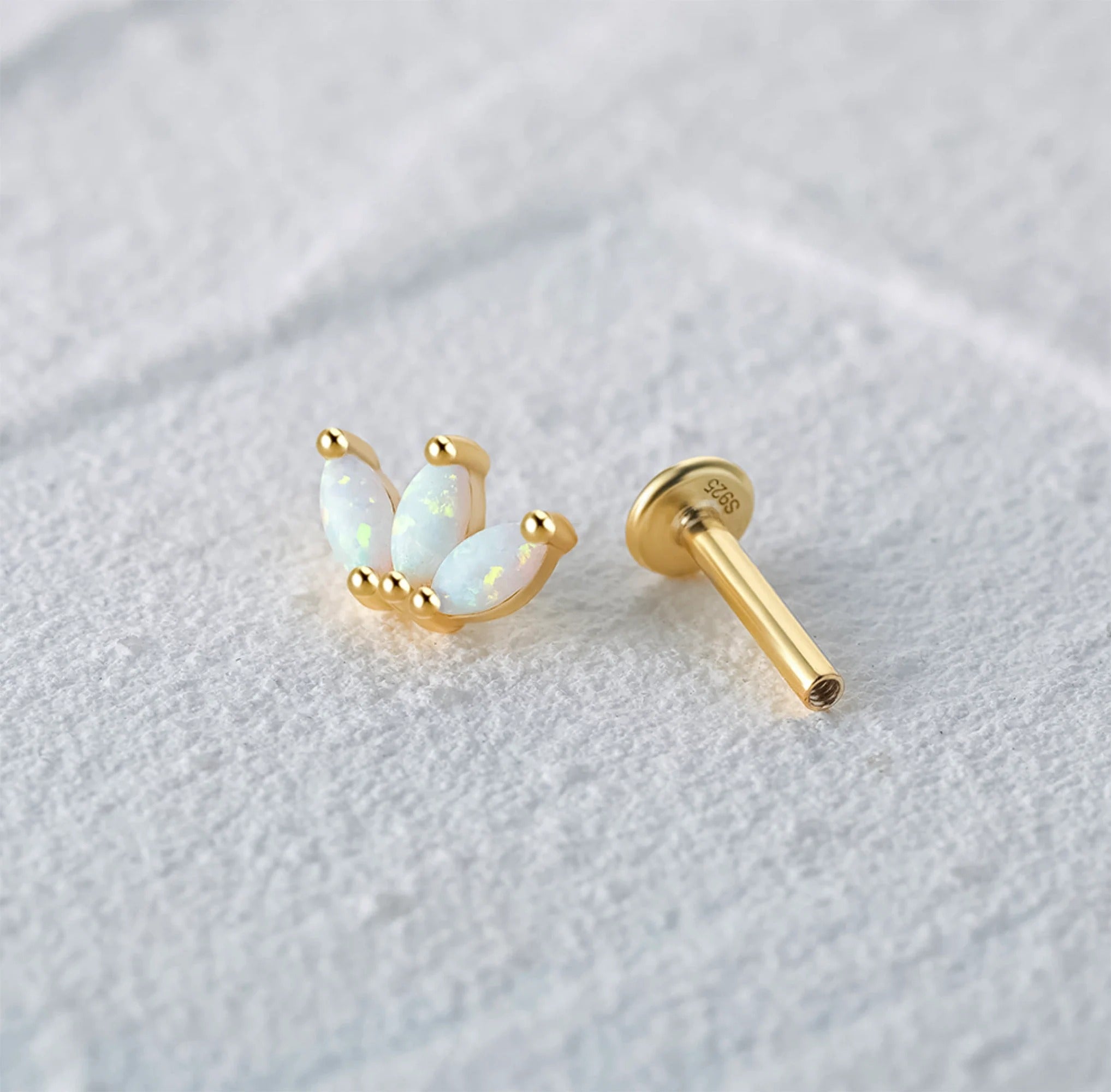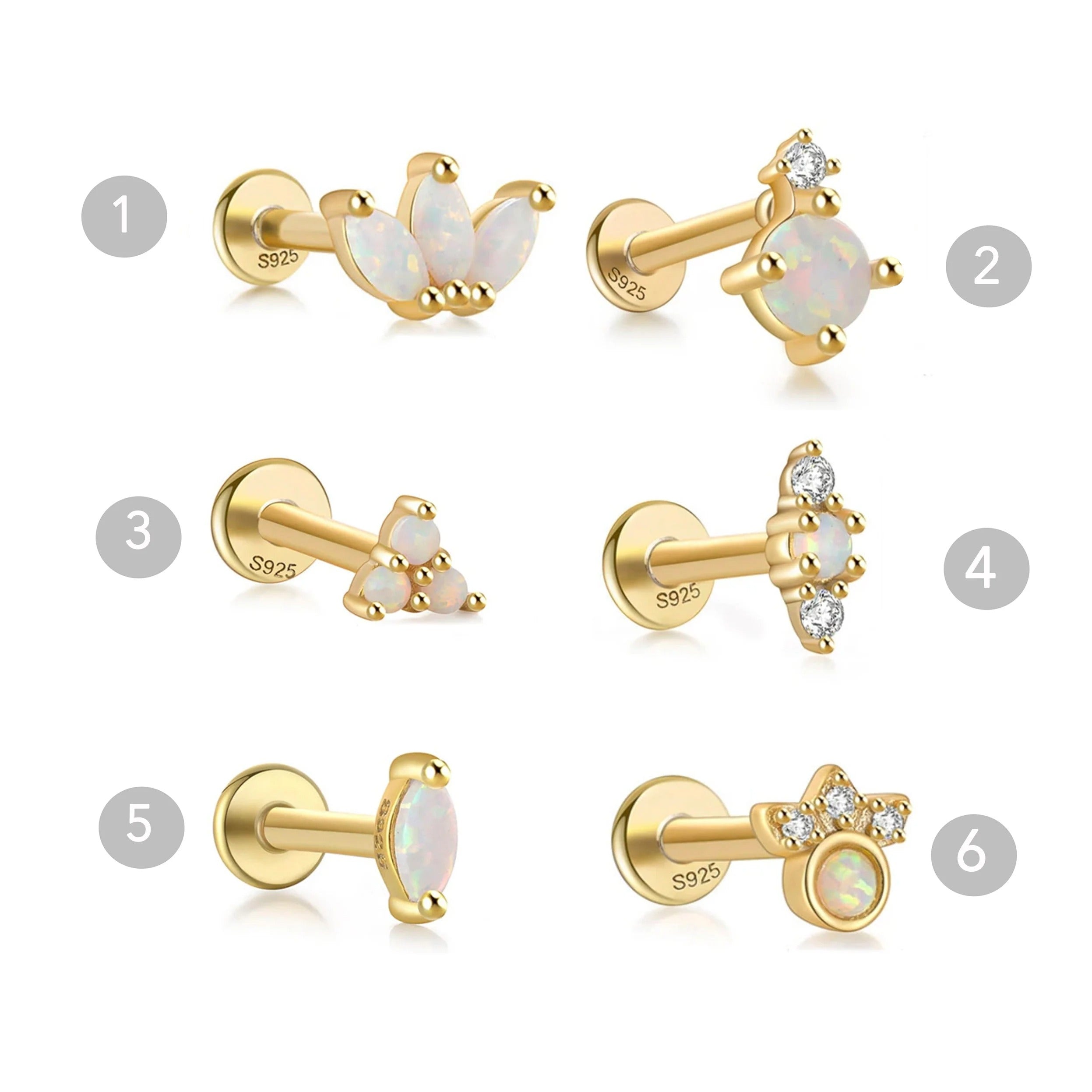 Sterling Silver Tiny Opal Flat Back Earring, Labret Stud
