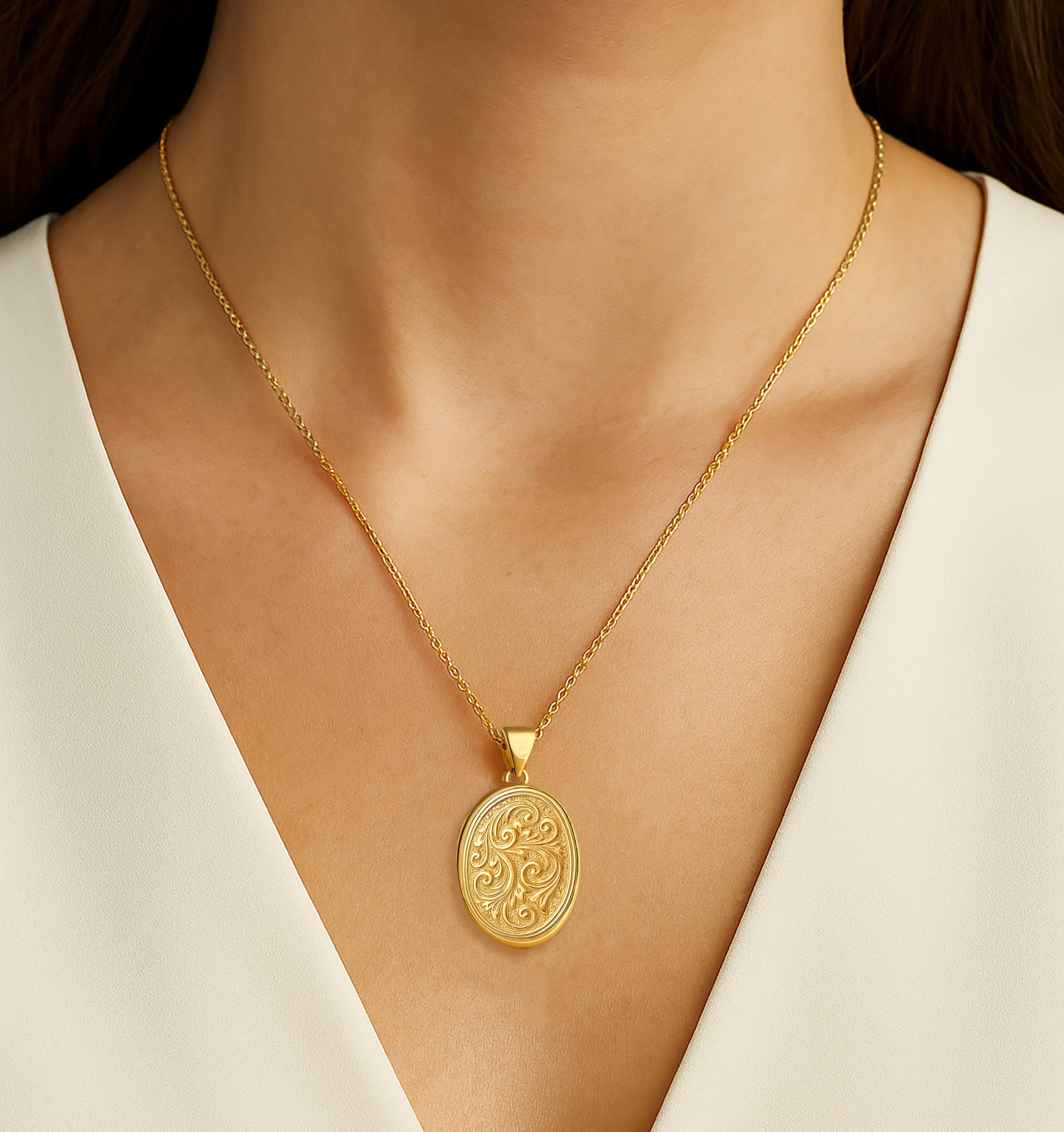 This oval photo locket opens smoothly to hold two cherished pictures or keepsakes—making it the perfect gift for someone special or a treasured family heirloom to pass down for generations.