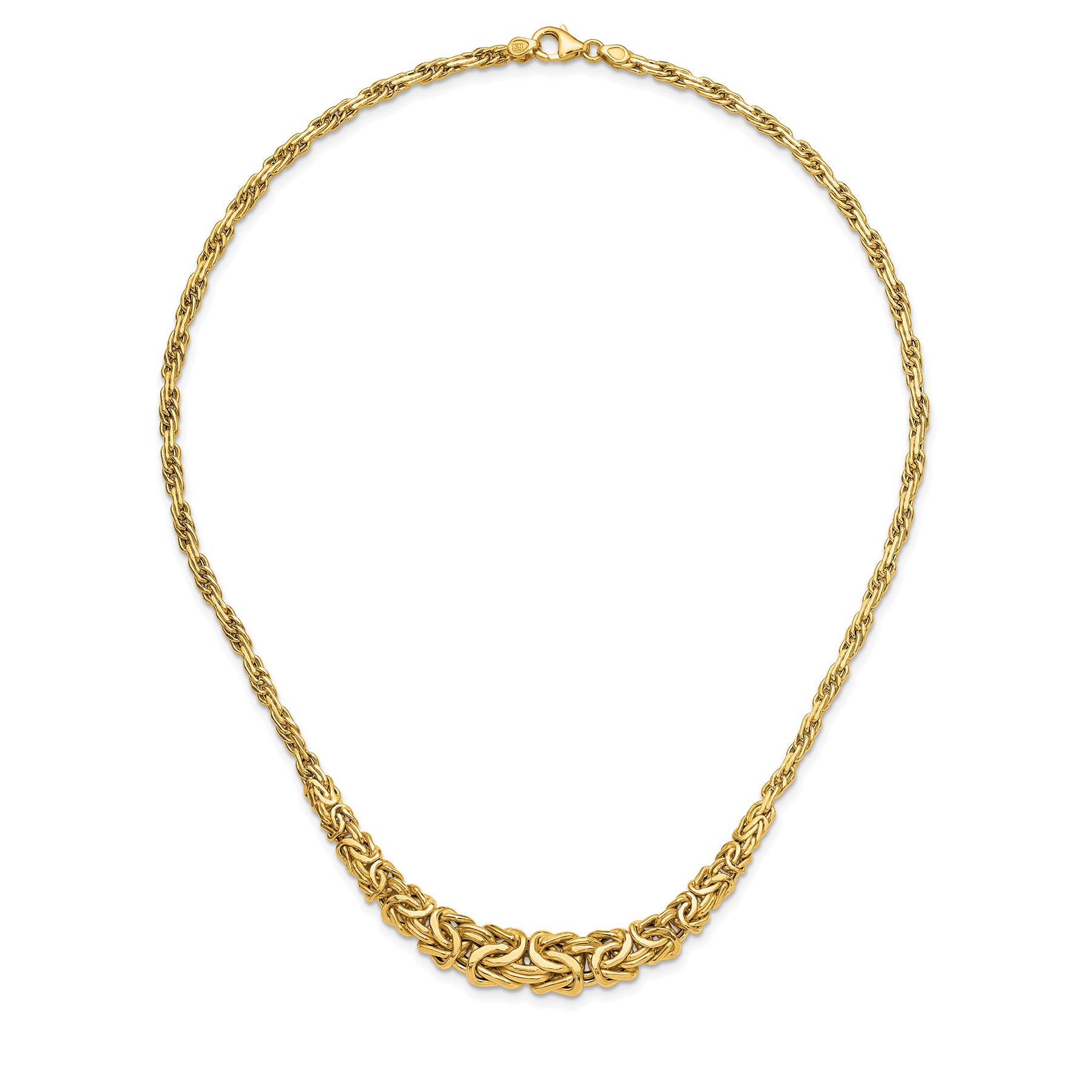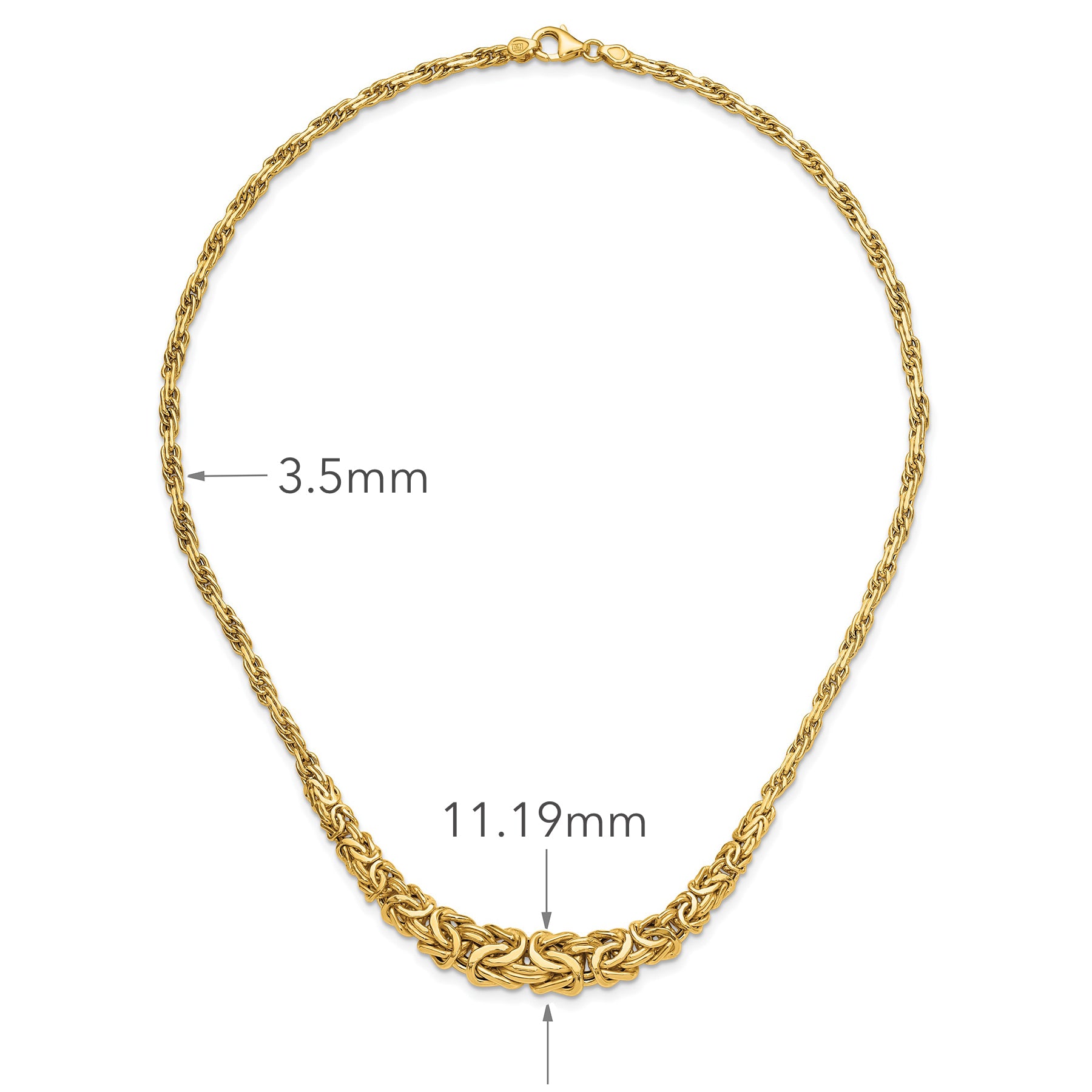 Hand-crafted in Italy from 100% real 14K gold, this necklace will never tarnish or fadeāmaking it an heirloom-quality piece youāll wear for a lifetime. The rich Byzantine link structure creates depth and texture while maintaining a smooth, polished feel against the skin.