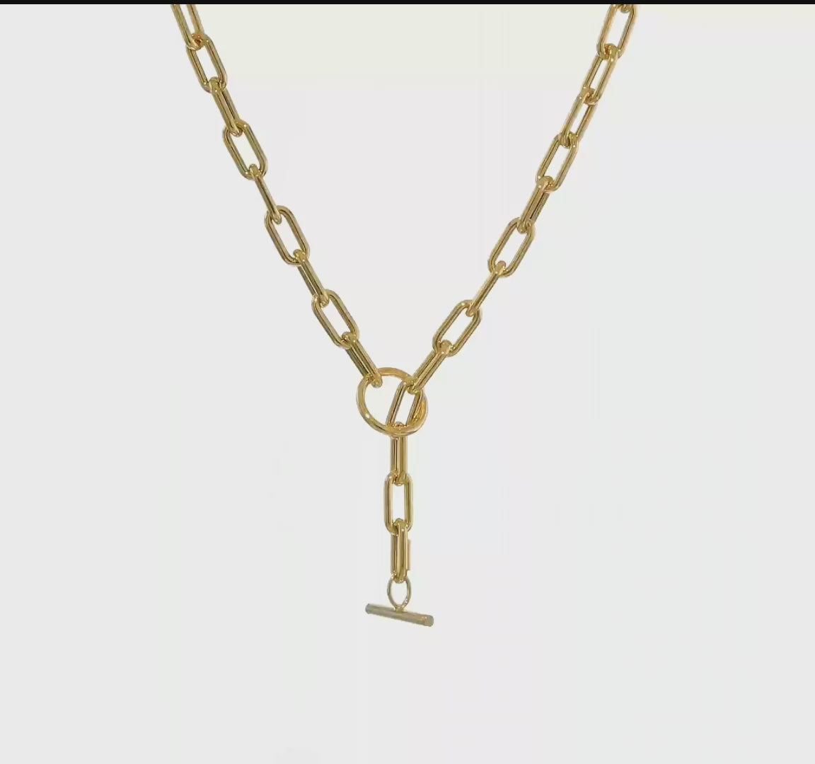 Add versatility and elegance to your jewelry collection with this stunning 14K Gold Toggle Necklace. Featuring bold, polished links and a sleek toggle bar closure, this necklace offers two unique ways to wear it—show off the stylish toggle clasp as a statement centerpiece or keep it at the back for a classic, seamless look.