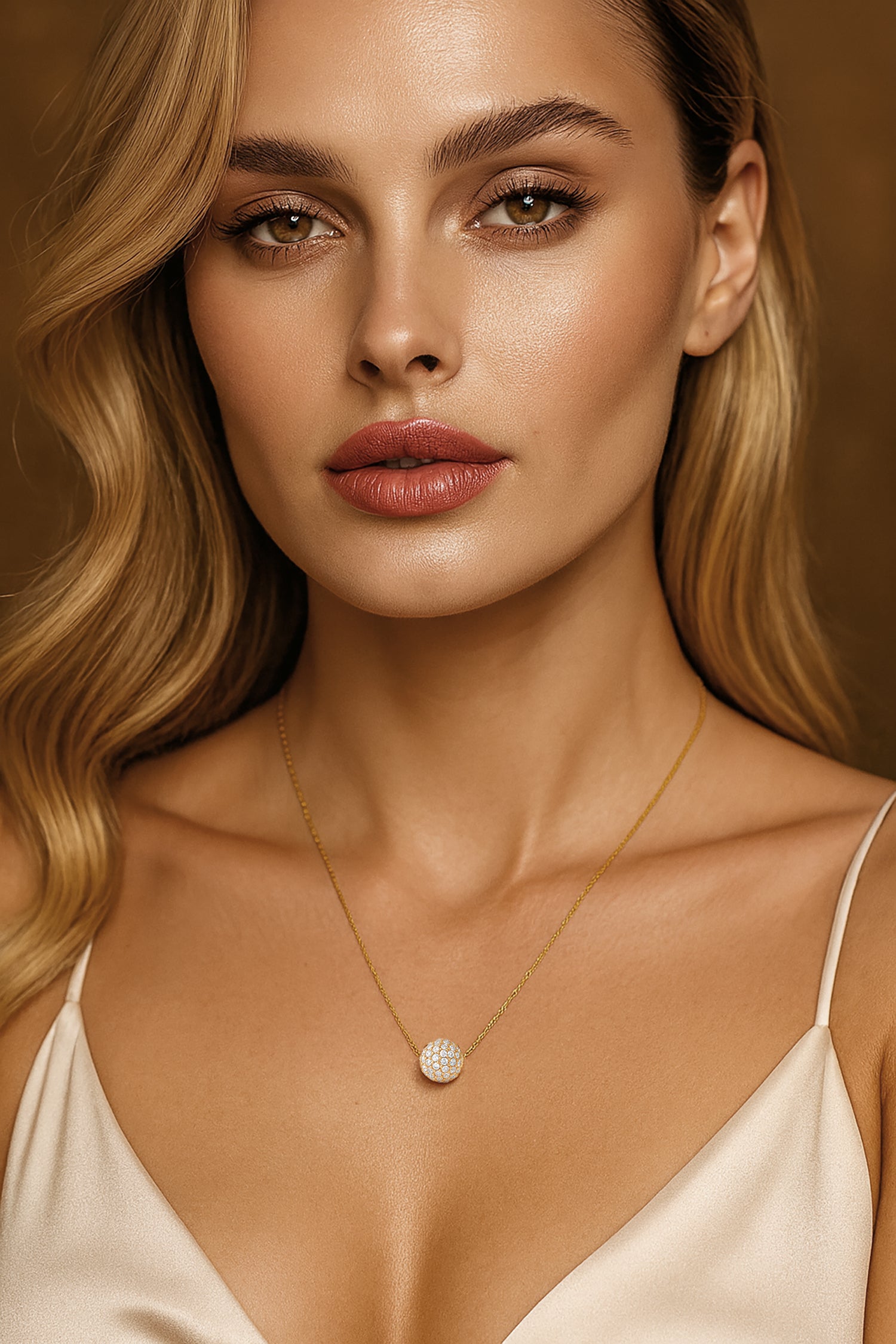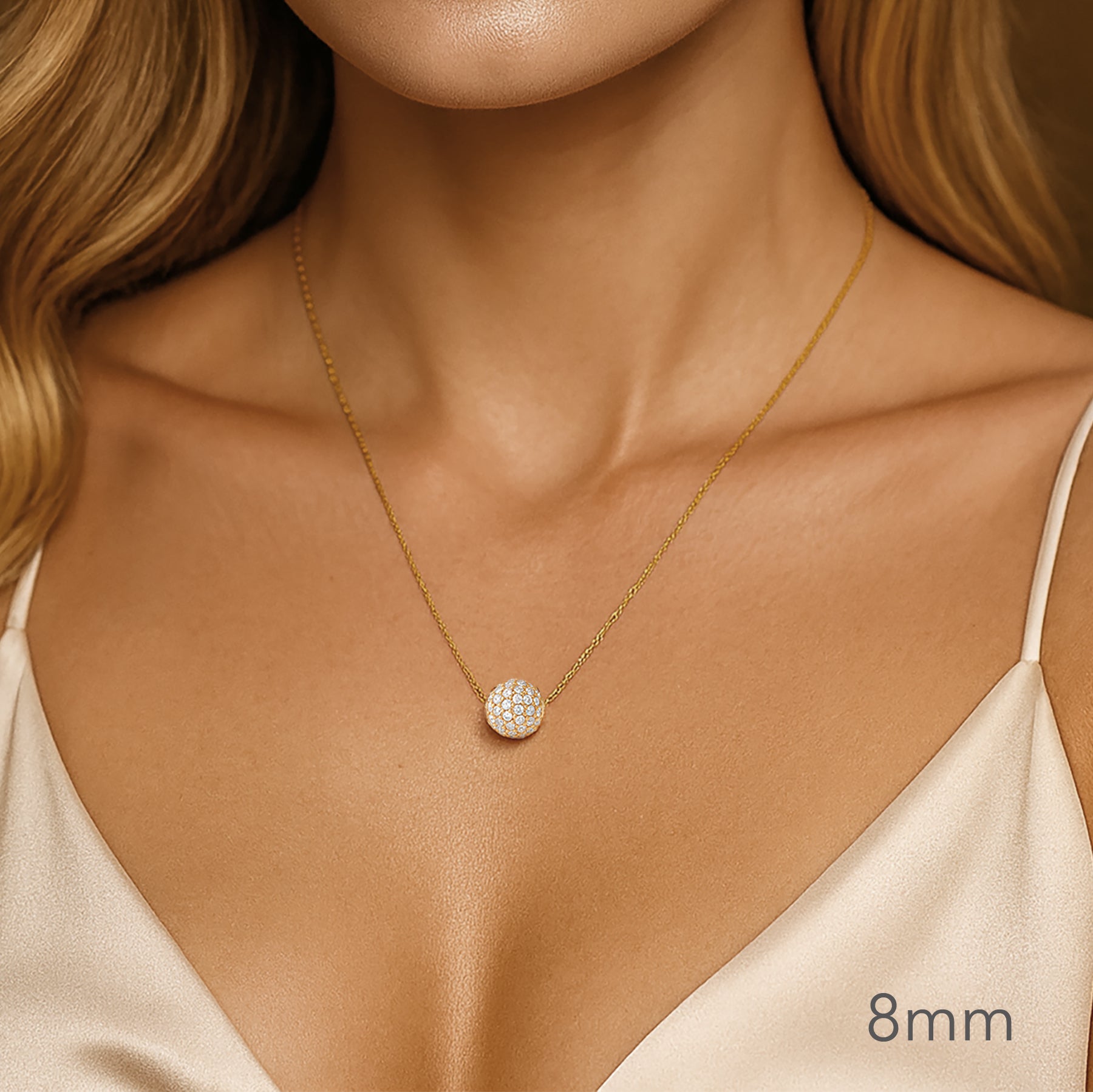 Redefine everyday luxury with this 14K Solid Gold Pavé Diamond Ball Charm Necklace, handcrafted in Italy for timeless beauty and versatility.