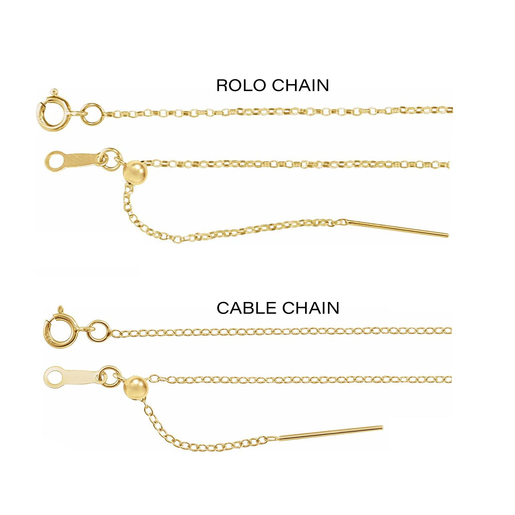 • Chain: 14k Gold 1.1mm, rolo or cable, you can add or remove charms