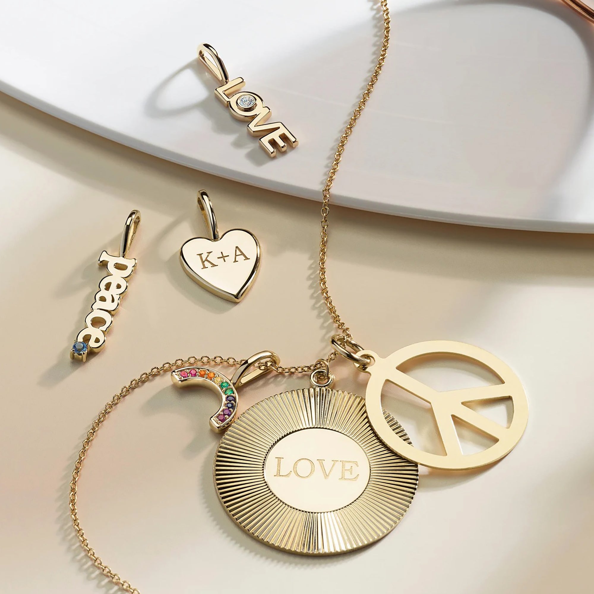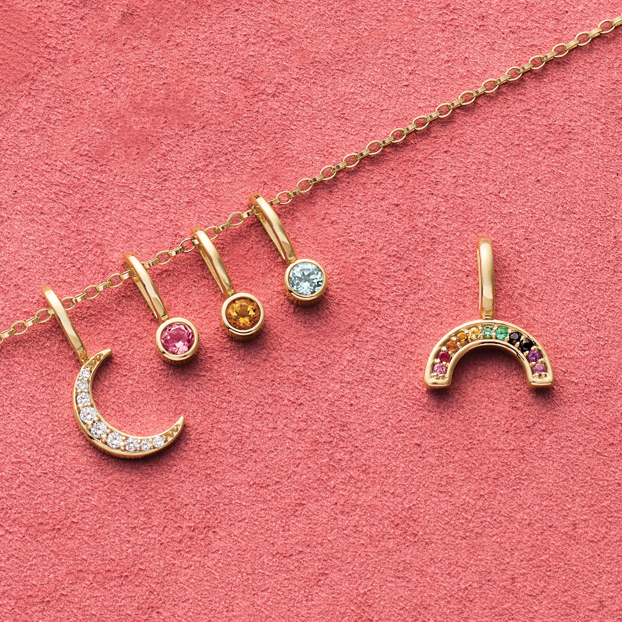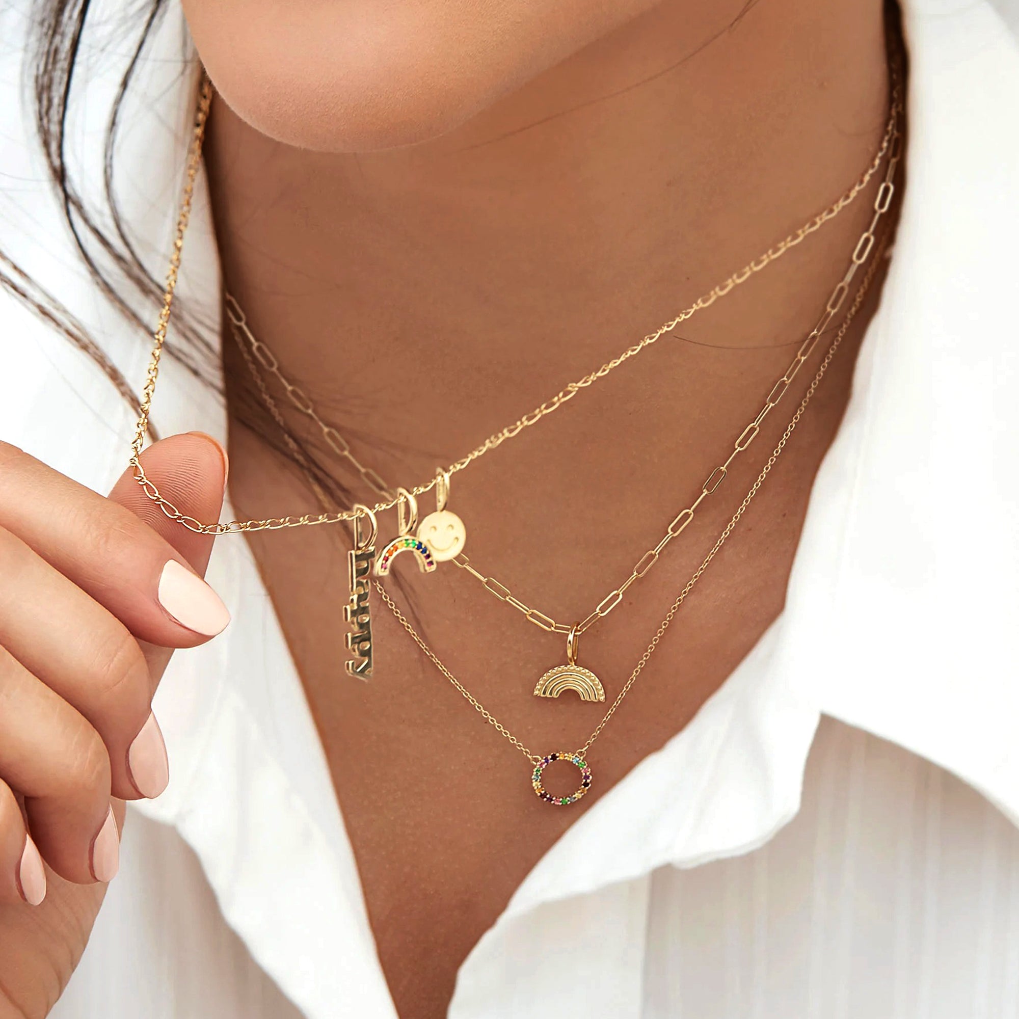 14K Gold Rainbow Charm Pendant ā Real Solid Gold Multicolor Gemstone Jewelry