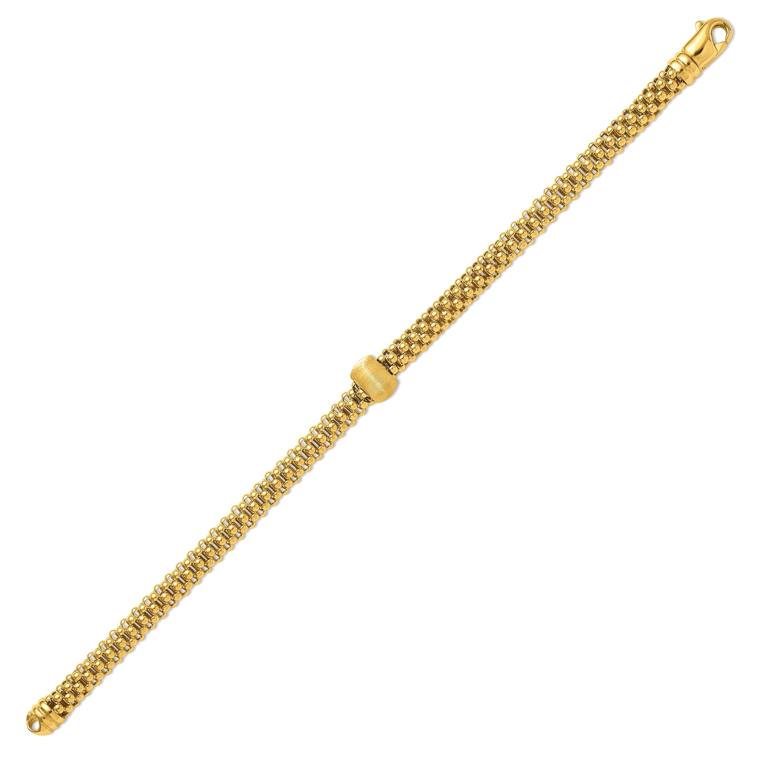 The iconic popcorn mesh design features hundreds of tiny diamond-cut links woven into a flexible, dimensional chain that drapes smoothly and reflects light beautifully from every angle.