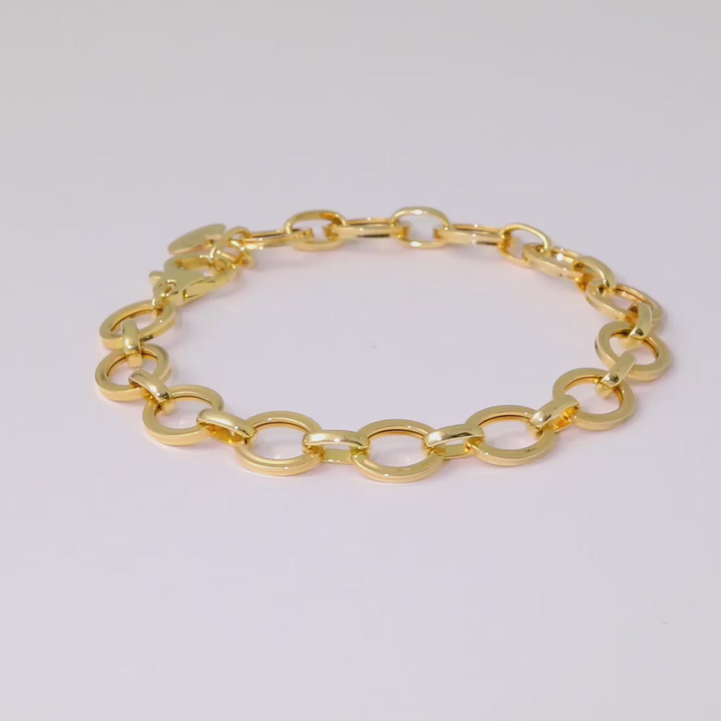 Add your charms and make it uniquely yours with this 14K Gold Rolo Chain Bracelet, expertly crafted in Italy. Featuring bold 11mm oval links, this chunky chain exudes both luxury and versatility. Wear it solo for a striking statement or transform it into a personalized charm bracelet — the wide, durable links provide strength, shine, and timeless style.