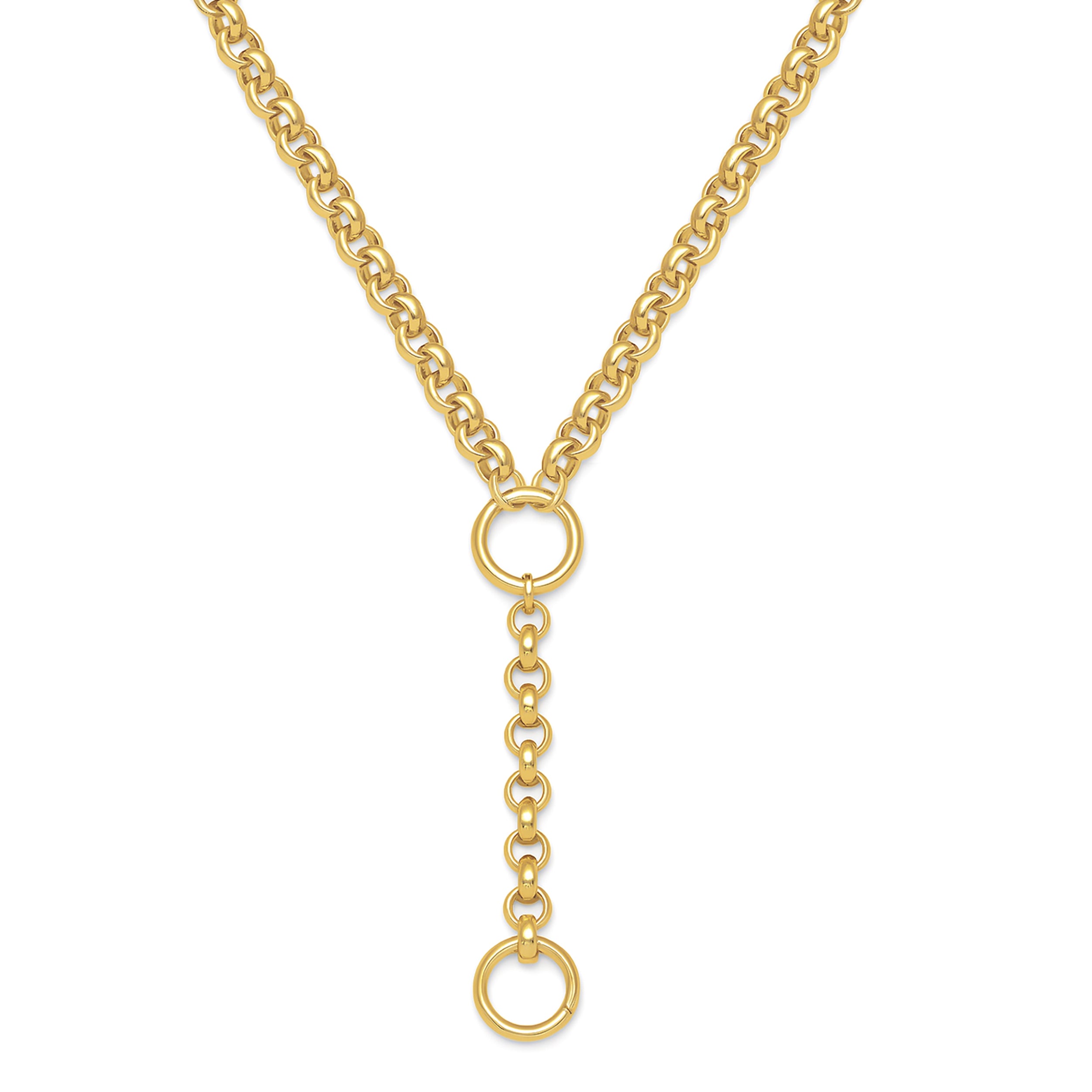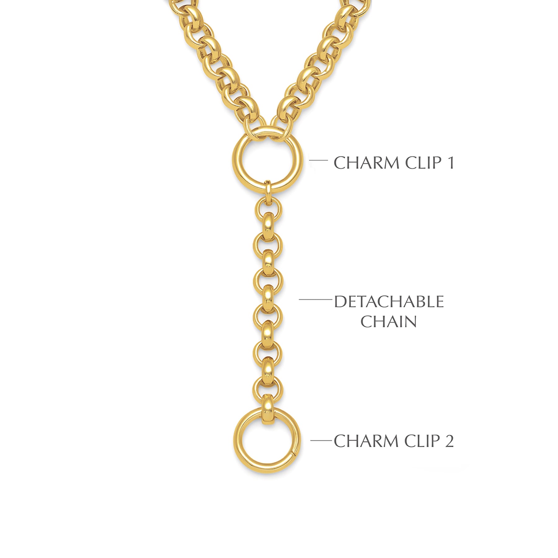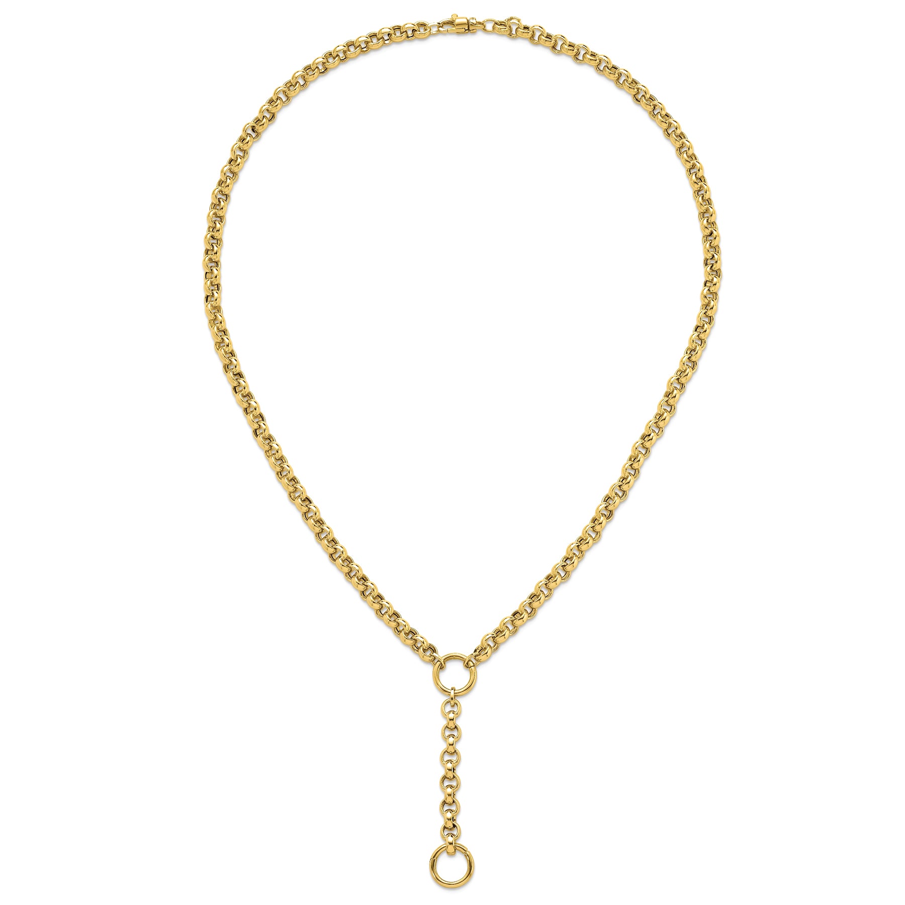 This luxurious 14k gold rolo chain necklace, made in Italy, offers exceptional craftsmanship and versatility. Featuring 2 charm connectors and a detachable chain, it allows you to customize your look effortlessly. Add your favorite charms or remove the long chain for a sleek, minimalist style. Perfect for layering or wearing solo, this Y-shaped lariat necklace combines links with modern sophistication.