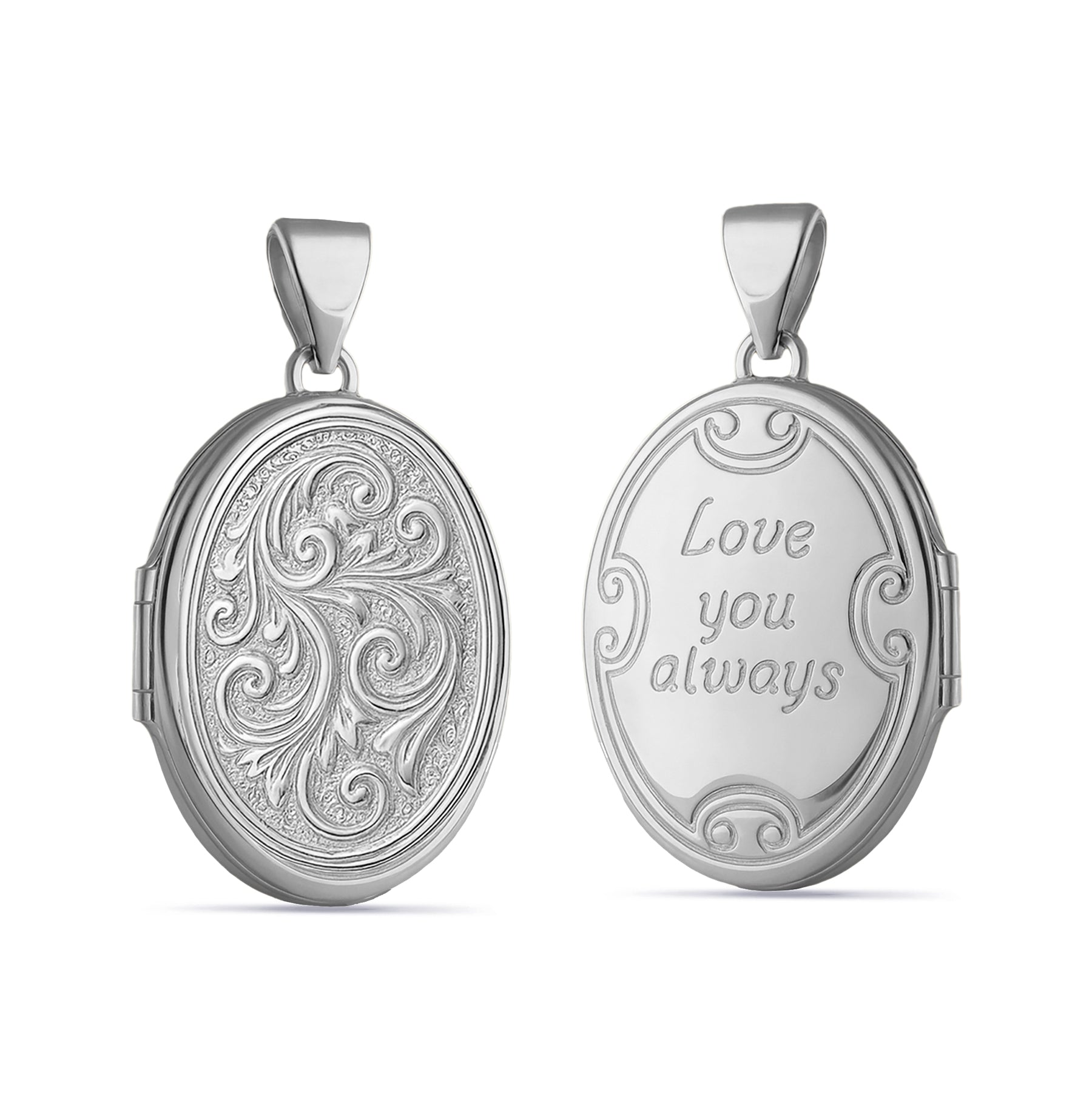 This oval photo locket opens smoothly to hold two cherished pictures or keepsakes—making it the perfect gift for someone special or a treasured family heirloom to pass down for generations.