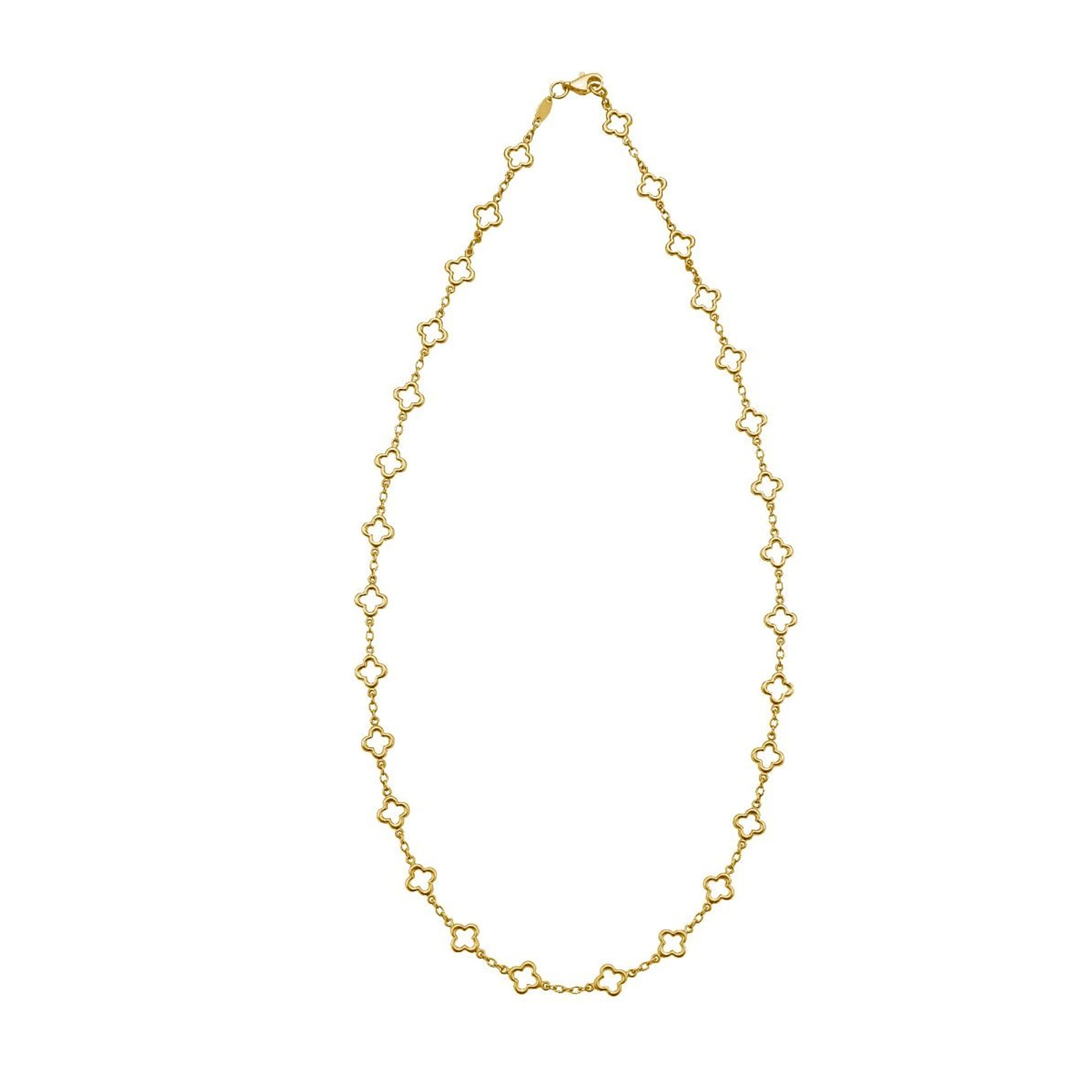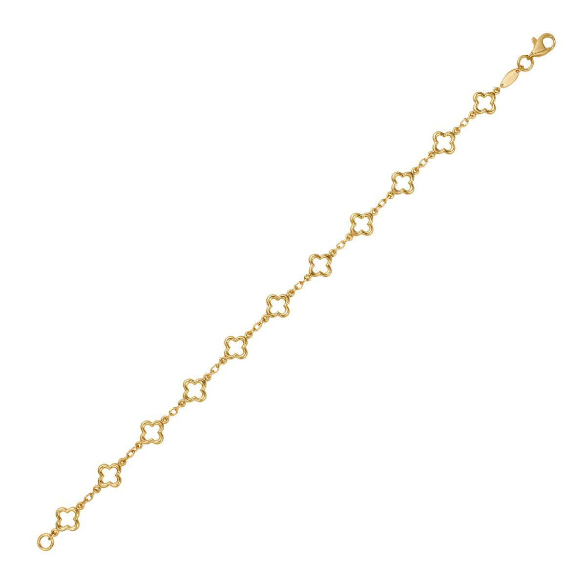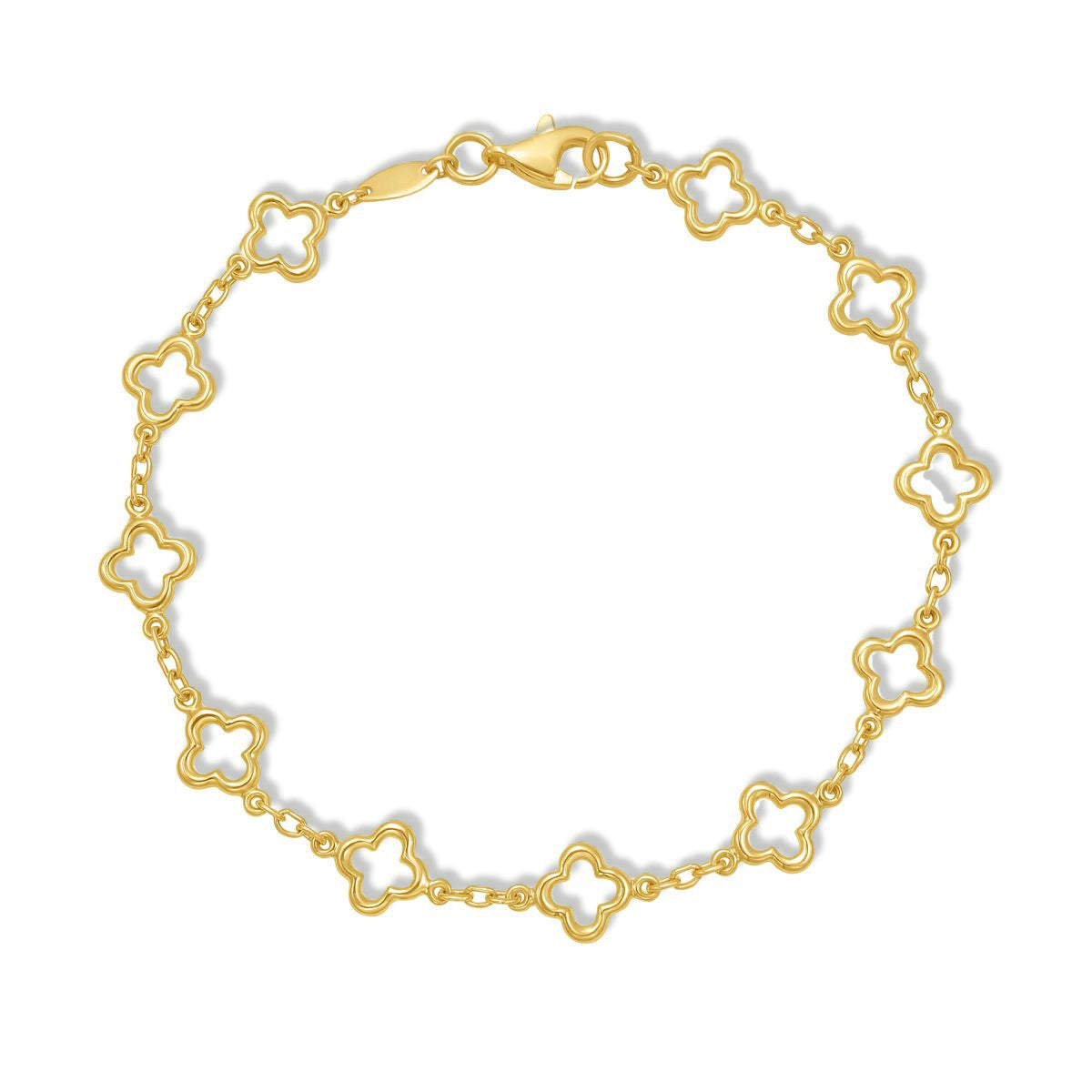 Crafted from genuine 14K yellow gold, each design features evenly spaced 7mm x 7mm clover stations, a timeless symbol of luck, protection, love, and prosperity. The polished gold finish delivers a refined shine that feels elegant yet effortless for everyday wear.