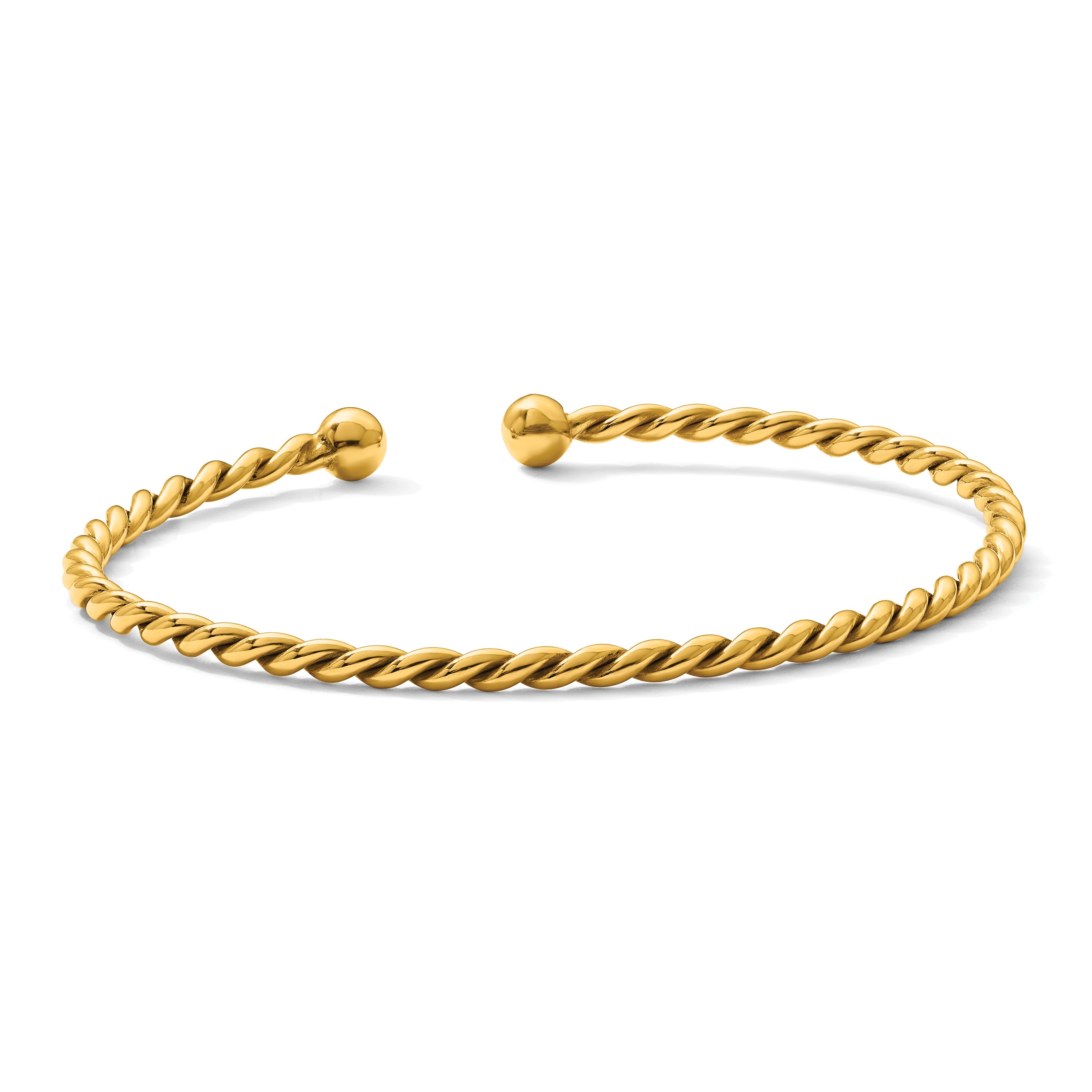 Material and Design: This bracelet is crafted from high-quality 14K gold, known for its durability and radiant glow. The twisted design of the cuff bangle adds a touch of sophistication and modern flair to the traditional bracelet style.