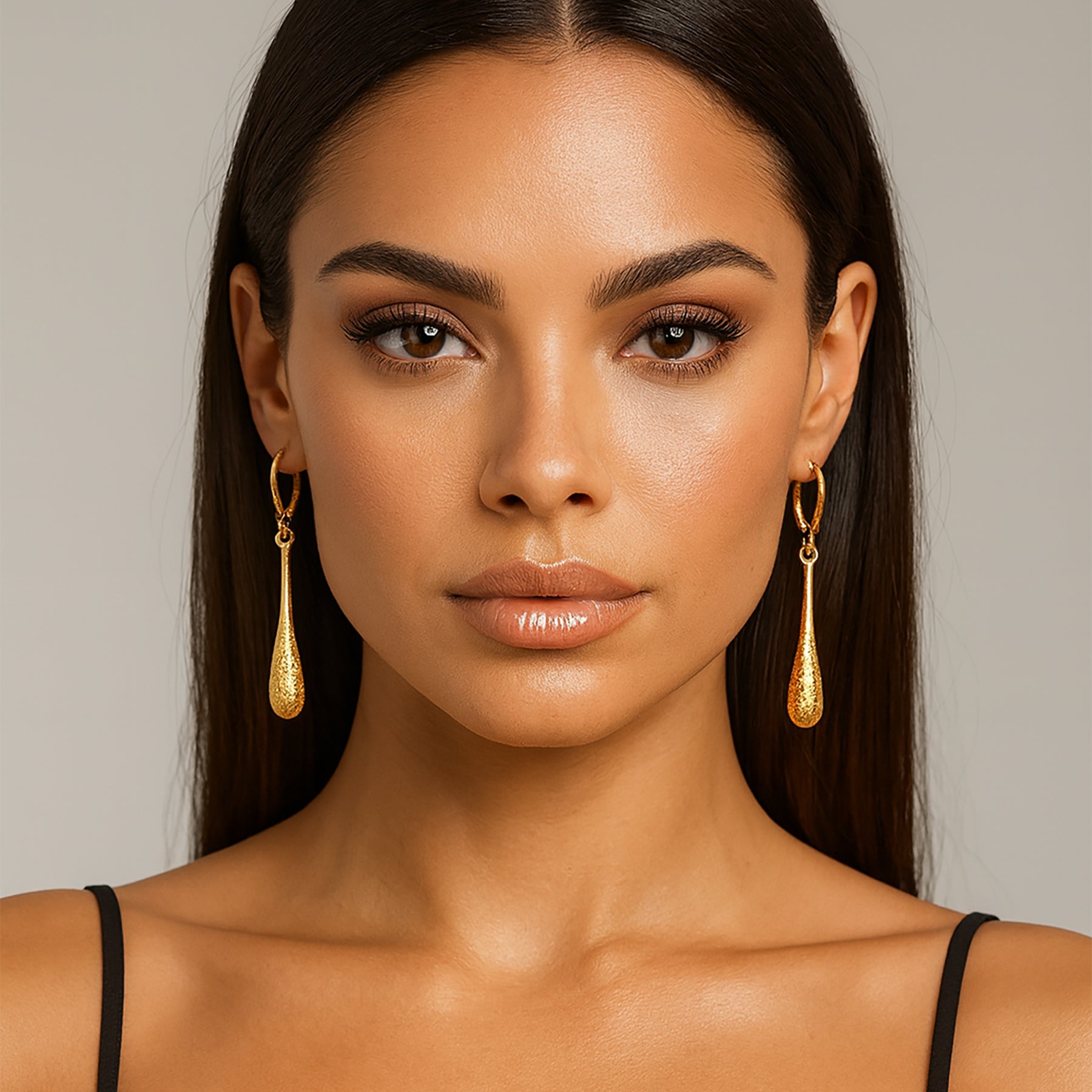 Suspended from secure lever-back closures, these earrings offer graceful movement, lightweight comfort, and all-day wearability. Their shimmering faceted surface delivers a liquid-gold sparkle that instantly brightens the face, making them the perfect statement for both everyday luxury and special occasions.