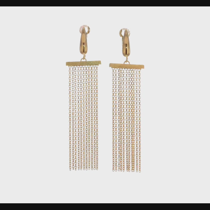 14K Gold Multi-Strand Tassel Dangle Earrings – Long Fringe Chain Drops