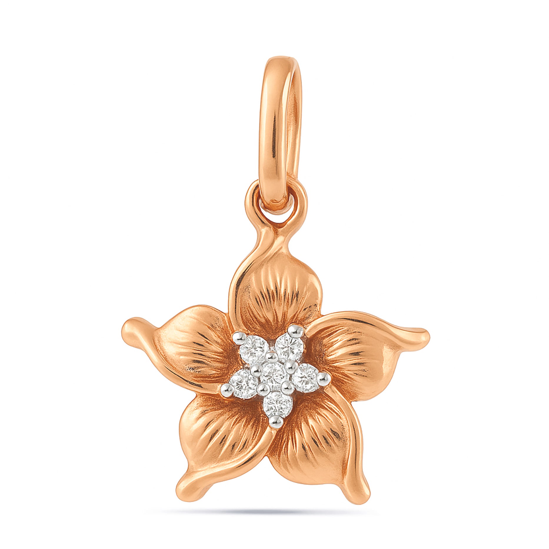 14K Yellow Gold Natural Diamond Plumeria Flower Pendant Necklace