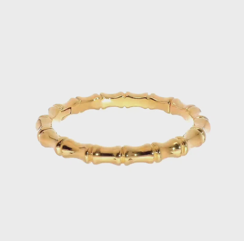 18k, 14k Gold Bamboo Hinged Chunky Bangle Bracelet for Women