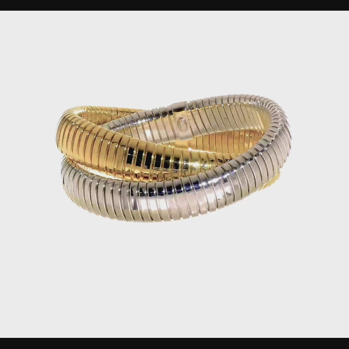 Italian Double Tubogas Stretch Bracelet – 925 Sterling Silver Flexible Coil Bangle