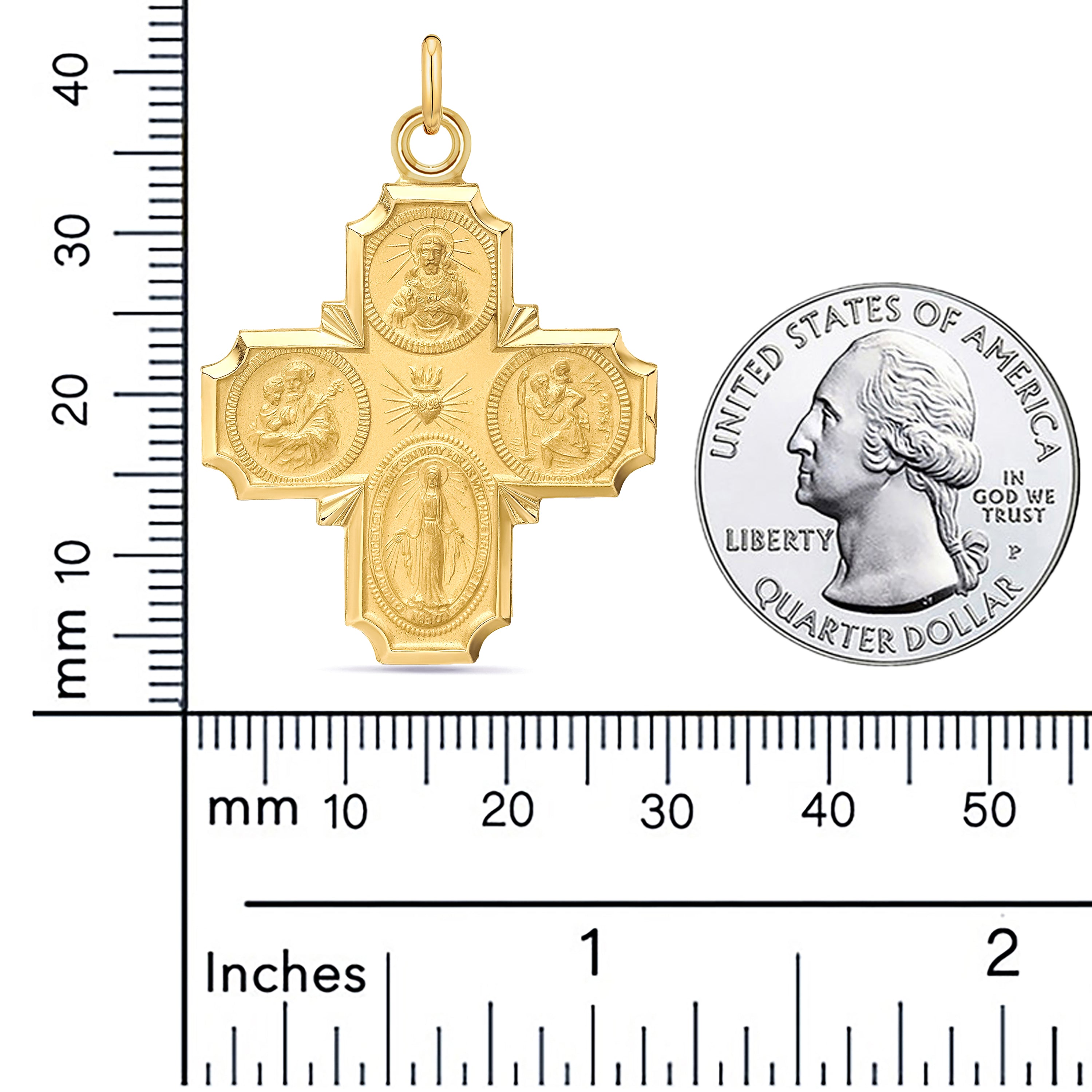 Honor your faith with this Large 28mm x 37.4mm 14K Solid Gold Four-Way Cross Pendant, a powerful and traditional Catholic medal beautifully crafted in rich, genuine 14K gold. This substantial pendant features exceptional engraving on both sides — combining artistry, devotion, and protection in one heirloom-quality piece.
