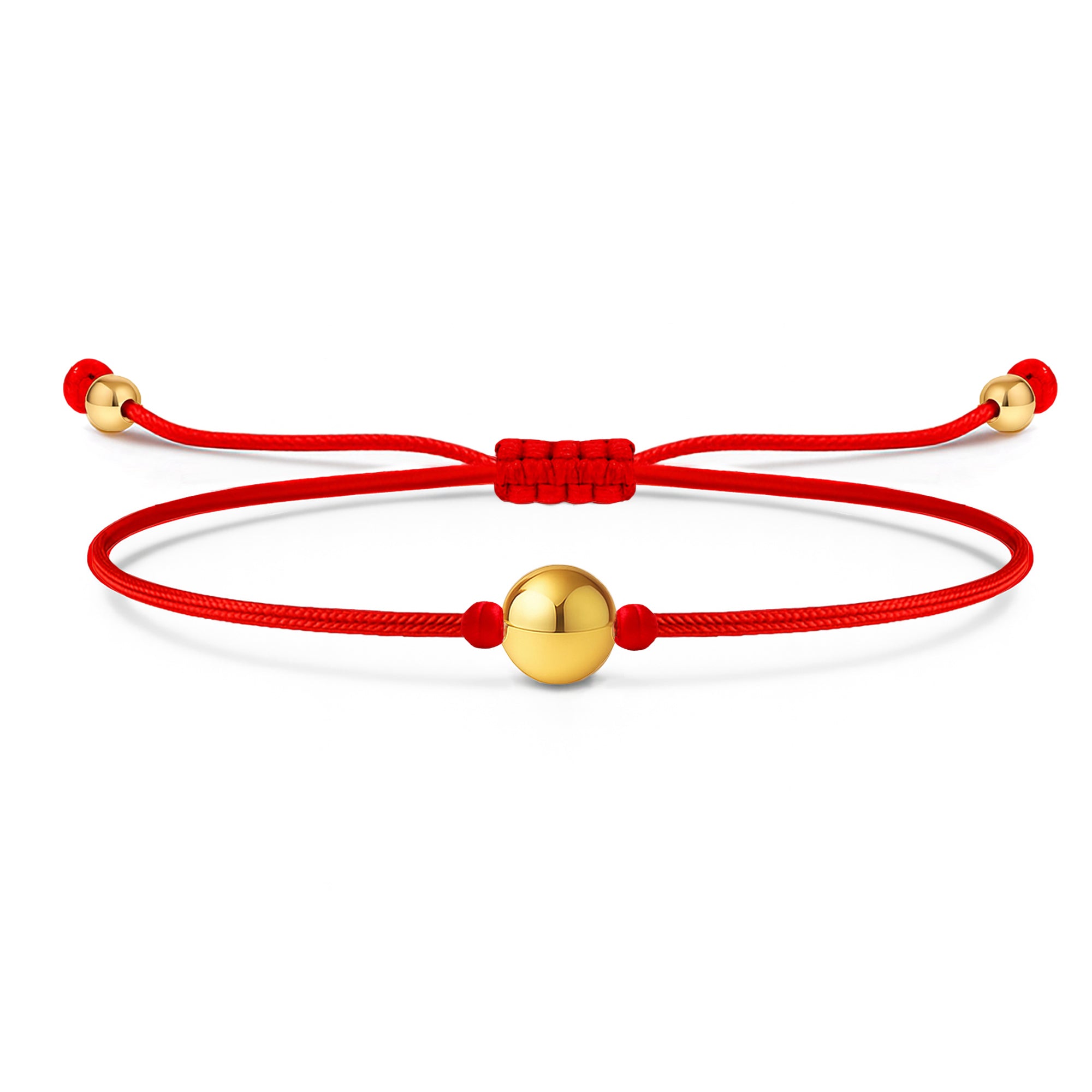 14K Solid Gold Beaded Red String Bracelet Kaballah Good Luck Protection